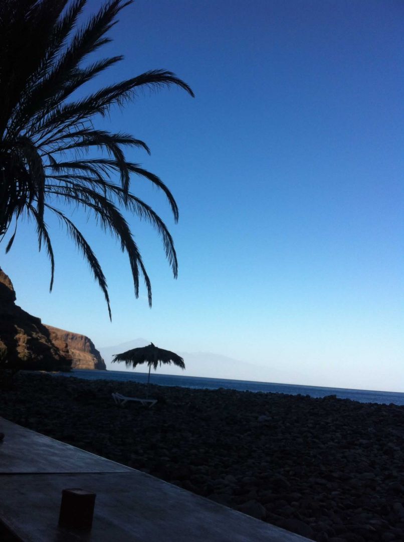 Freizeit und Umgebung- Das Fincahotel auf La Gomera bietet einen ca. 400 m langen Steinstrand (großteils große Steine) mit Sonnenschirmen, Liegen, Toiletten und Süßwasserduschen. Je nach Wellengang wird manchmal auch schwarzer Lavasand an den Strand gespült bzw. wieder weggespült.