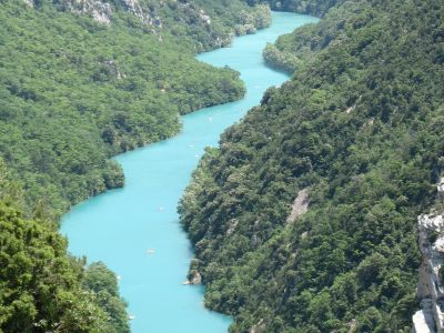 Eine atemberaubende Kulisse im südlichen Frankreich: Der Lac de Ste. Croix am Grand Canyon du Verdon. Glasklares Wasser, markante Bergprofile, die spektakuläre Schlucht mit über 500 m hohen Steilwänden und malerische kleine Dörfer bieten den Rahmen für das Abenteuercamp in der Provence für Familien und Singles mit Kindern ab 6 Jahren.