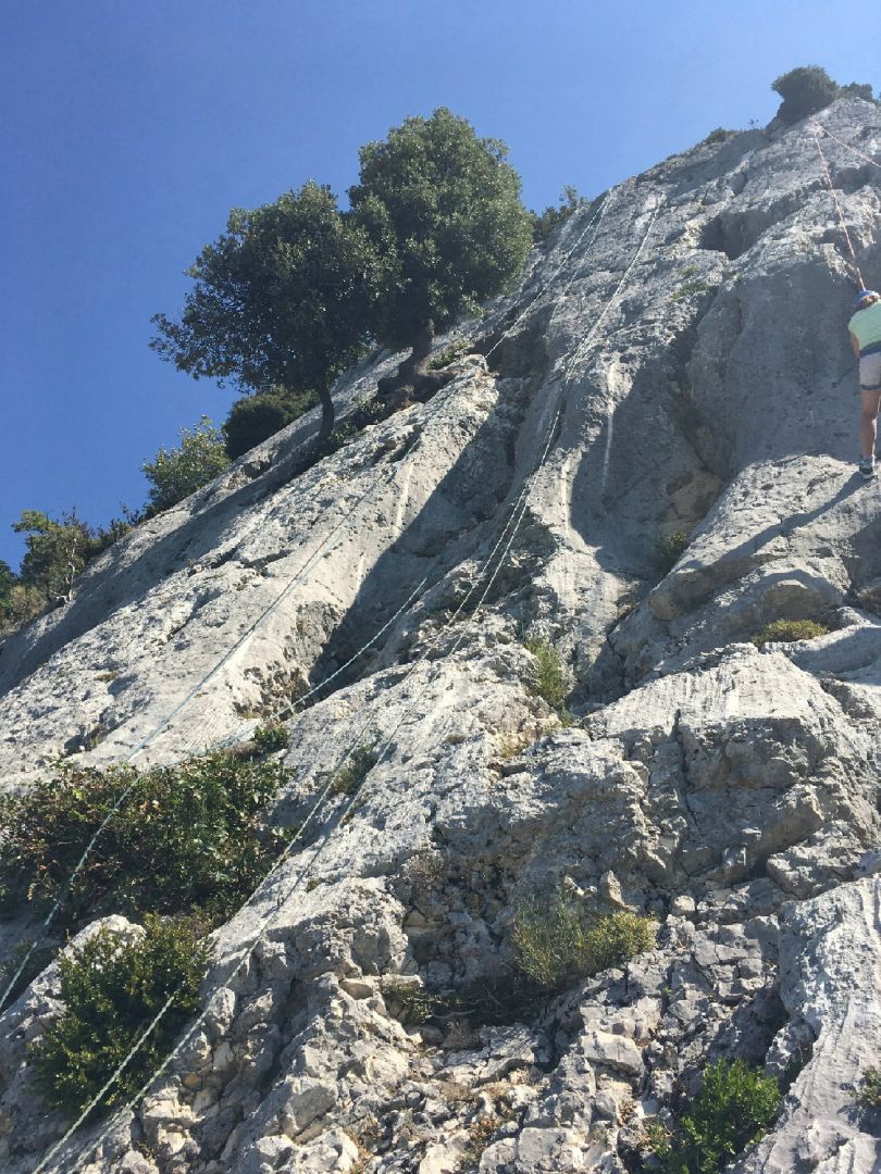 Im Camp gibt es ein Dutzend MTBs von XS bis XL. Dazu zwei Jugendräder mit 24 Zoll-Reifen. Kinderräder für Kinder bis 8 Jahren gibt es nicht. Es kann sich aber lohnen diese als Familie mitzunehmen, um auf dem Campingplatz herum zu flitzen oder den Fußweg zum großen See damit zu bewältigen.Klettern: Es wird betreutes Klettern in kleinen Gruppen angeboten. An den ausgesuchten Kletterspots finden Anfänger und fortgeschrittene Anfänger eine gute Auswahl an Routen. Allein den berühmten Kalkfelsen der Verdonschlucht zu beklettern und unter den Fingern zu spüren, ist eine Erfahrung wert.
