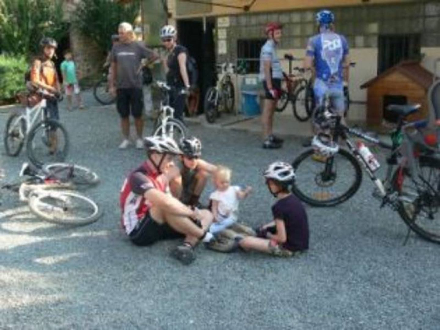 A.fischer V.20.08.2010Ernesto war ein wunderbarer Gastgeber, sein Hof bietet alles, was man für eine schöne Woche braucht. Geräumige Zimmer, gutes (und reichliches) Essen, landschaftlich schöne Lage, ein sportliches Programm und einen Pool zum Erfrischen. In der Zeit, in der wir dort waren, hatte nur eine weitere Familie die Mountainbikewoche gebucht. Unseren Touren schloßen sich aber oft noch andere Gäste an, so dass wir meist in einer Gruppe von etwa 12 Personen unterwegs waren. Ein Großteil der Gäste waren italienische oder schweizer Mountainbiker, die mit anderem Gerät und Anspruch ihre Zeit verbrachten. Gegenüber den teuren Hightechmountainbikes mit Vollfederung, die Ernesto auch im Verleih hatte, wirkten unsere mitgebrachten Mountainbikes sehr einfach. Es wurde rasch klar, warum in den Unterlagen steht, dass Trekkingräder nicht geeignet wären. Wir fuhren wenig auf Asphalt, sondern viel auf Feld- und Waldwegen oder den extra für die Mountainbiker angelegten Singletrails. Auch das vorgeschaltete Techniktraining erwies sich als sinnvoll. Und trotz anfänglicher Skepsis, ob die geplanten Touren mit unserer 1jährigen Tochter im Kindersitz überhaupt machbar sind, ging dann doch alles. Selbst durch den Canyon kamen wir heil runter. Vorsichtshalber stieg ich an besonders steilen und holprigen Stellen zwar mal ab, das taten andere aber auch. Andererseits bestand für die ambitionierten Fahrer immer wieder die Möglichkeit noch eine Extrarunde zu fahren oder einen schwierigeren Weg zu wählen. Um die Kinder bemühte sich Ernesto besonders, er kritisierte offen und machte Verbesserungsvorschläge, aber über ein Lob von ihm freuten sich die Kleinen immer besonders. Die gewählten, durch wunderschöne Landschaft führenden Touren erforderten eine sehr gute Grundkondition bei unserer 8-jährigen Tochter und dem 9jährigen Jungen, der dabei war. Nicht nur die Kinder stürzten gelegenlich (daher Ernestos Empfehlung Vollfingerhandschuhe anzuziehen!). Ernesto hatte aber auch angeboten bei Bedarf einfachere Strecken zu wählen, bzw. bei der 30km-Tour ans Meer bestand an verschiedenen Stellen die Möglichkeiten, mit dem Rad in den Transporter zu steigen und sich fahren zu lassen. Und als wir auf einer Tour in ein Gewitter kamen, wurden wir sehr rasch mit dem Bus abgeholt. Ein bißchen schade war, dass zu unserer Zeit kaum Kinder im Alter der unseren da waren. Besonders gut gefallen hat uns die Landschaft und Ernestos Gastfreundschaft. Obwohl der Gutshof wohl etwa 30 Zimmer hat, war er um jeden einzelnen Gast bemüht und schaffte es für eine familiäre Atmosphäre zu sorgen. Ausserdem waren die Mahlzeiten hervorragend. Und Massa Marittima mit seiner malerischen Altstadt, das vom Haus aus in gut 20 Minuten zu Fuß erreichbar ist, ist auch einen Abstecher wert. Die Woche hat sich auf jeden Fall gelohnt und ist für alle zu empfehlen, die sich im Urlaub gerne auch etwas bewegen wollen. Zeit zur Muse bleibt nachmittags dann noch.Biking Toscana