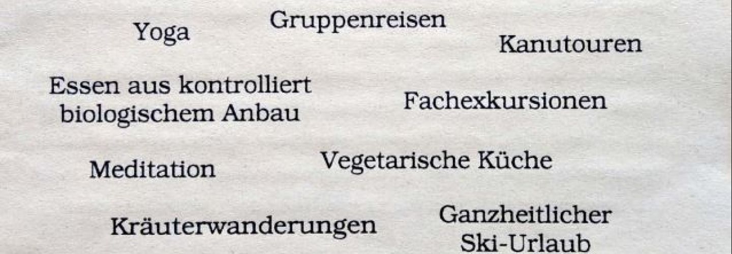 Doch wie kam es zum Namen ReNatour? Gesucht war eine Bezeichung, die für die Philosophie des Unternehmens steht. Notiert wurde alles, was zum Thema passte und in einen Topf geworfen: Reisen, Umwelt, Spaß, sanft, bio, Tourismus, Erholung, Natur, öko, Urlaub usw. Am Ende hatte Sybille die Idee: