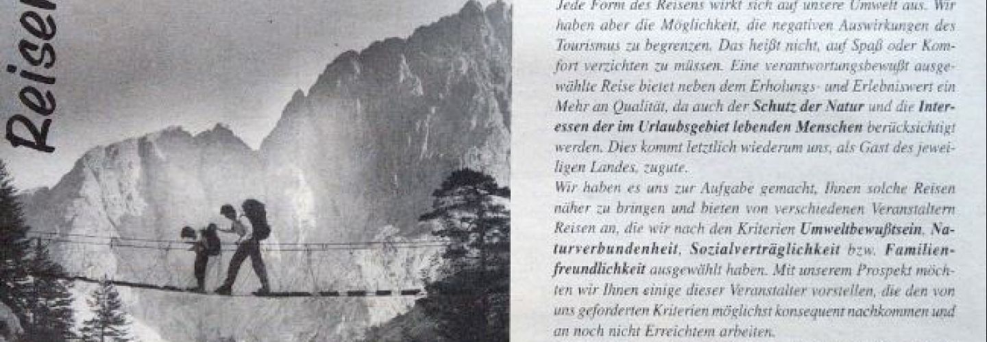 Um ReNatour bekannt zu machen, gingen wir auf viele Messen. Regionale Messen wie die LEBEN2000 in Schwabach oder Roth und auf die neu geschaffene "ÖkoWelt" in Nürnberg und München. Kaum zu glauben, dass daraus die heutige Welt-Leitmesse der Naturkostbranche "BioFach" entstand. Der jährliche Treff für alle alternativen Reiseveranstalter war der Reisepavillon in Hannover.