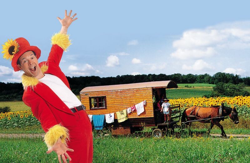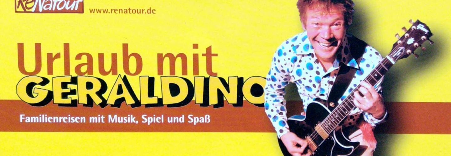 "Gauklerfeien mit GERALDINO": So hieß eine Reise, die wir 2001 entwickelten. Die Idee dahinter: Reisen in Zusammenarbeit mit Künstlern, Musikern und Schauspielern. Die Pilotreise war ein voller Erfolg. Mit 10 Wagen aus Holz und zwei Planwagen mit je einem Pferd davor und einer Familie auf dem Wagen zogen wir los, um die Vogesen zu entdecken. Abends trafen wir uns auf Bauernhöfen, bildeten eine Wagenburg und wurden kulinarisch verwöhnt mit einer bodenständigen französischen Küche. Begleitet wurde die Reise vom Kinderliedermacher GERALDINO alias Gerd Grashaußer aus Nürnberg. Ein sportlich-musikalisches Programm mit viel Spaß begeisterte Kinder und Eltern so sehr, dass wir beschlossen, mehr Reisen nach diesem Konzept aufzulegen. Weitere Künstler konnte wir für diese besonderen Urlaubsangebote gewinnen. Mit GERALDINO arbeiten wir bis heute zusammen. Eine Auswahl der Reisen mit ihm: