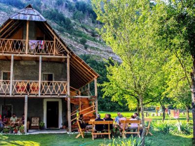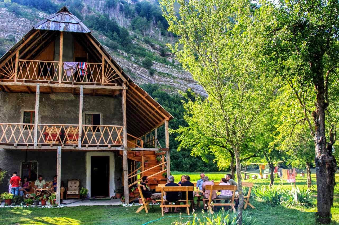 Übernachtung in einer Bergpension oder -hotel in Valbona. Frühstück, Mittag- und Abendessen