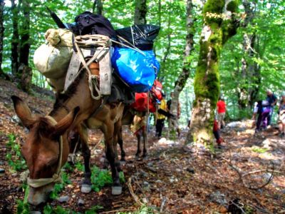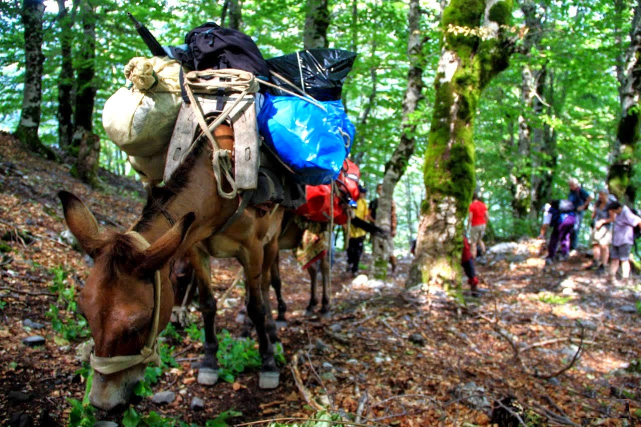 Kurzer Autotransfer zum Dorf Rragam, wo Sie Ihre heutigen Begleiter, einen Packpferdführer und dessen Pferd, das Ihr Hauptgepäck auf der heutigen Etappe transportiert, treffen. Durch den lichten Wald steigen Sie zum Valbona Pass (1.811 m) auf, der einzigen Verbindungsroute zwischen den beiden Dörfern. Der Scheitel bietet einen wunderbarern Panoramablick über beide Täler, der uralte Buchenwald spendet Schatten beim Abstieg ins Tal im Herz der Alpen. ↑750m ↓1125m ↔ 15 km, Gehzeit 6-7h