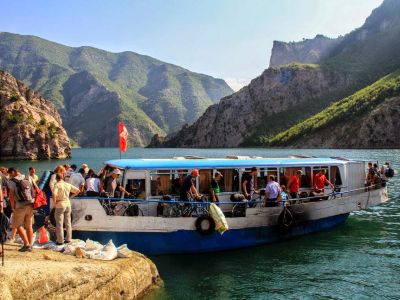 Der Bus holt Sie in den frühen Morgenstunden direkt am Hotel ab und Sie reisen durch die Drinschluchten zum Fähranleger in Koman (1,5h). Die dreistündige Bootsfahrt ist ein Erlebnis: An vielen Stellen wird halt gemacht und Frauen, Männer und Kinder, für die das Boot die einzige Verbindung zur Außenwelt ist, steigen ein und aus. Lebensmittel, Elektrogeräte oder Hühner werden ein- und ausgeladen. An der Anlegestelle in Fierze holt Sie ein Fahrer ab. Nach dem Mittagessen in Bajram Curri sind es noch 30 Minuten Fahrzeit zur ersten Wanderung. Die Strecke im Valbona-Tal führt durch schöne Buchenwälder und entlang eines kristallklaren Flusses mit zahlreichen Bademöglichkeiten zur gemütlichen Unterkunft. ↑250m ↓50m ↔ 7 km, Gehzeit 3h