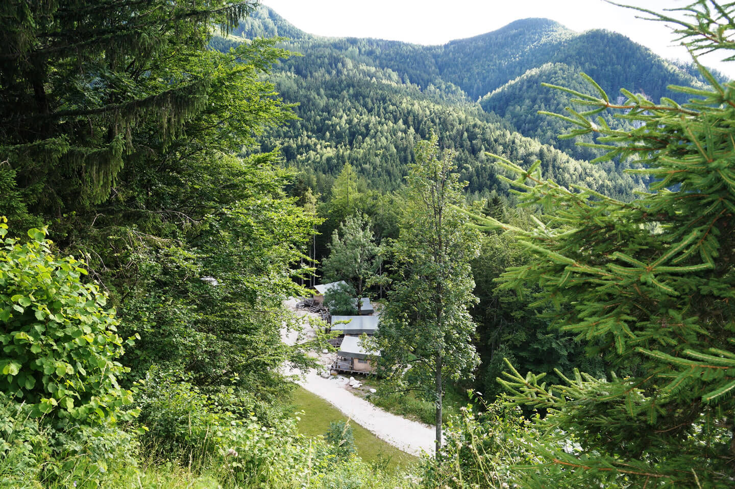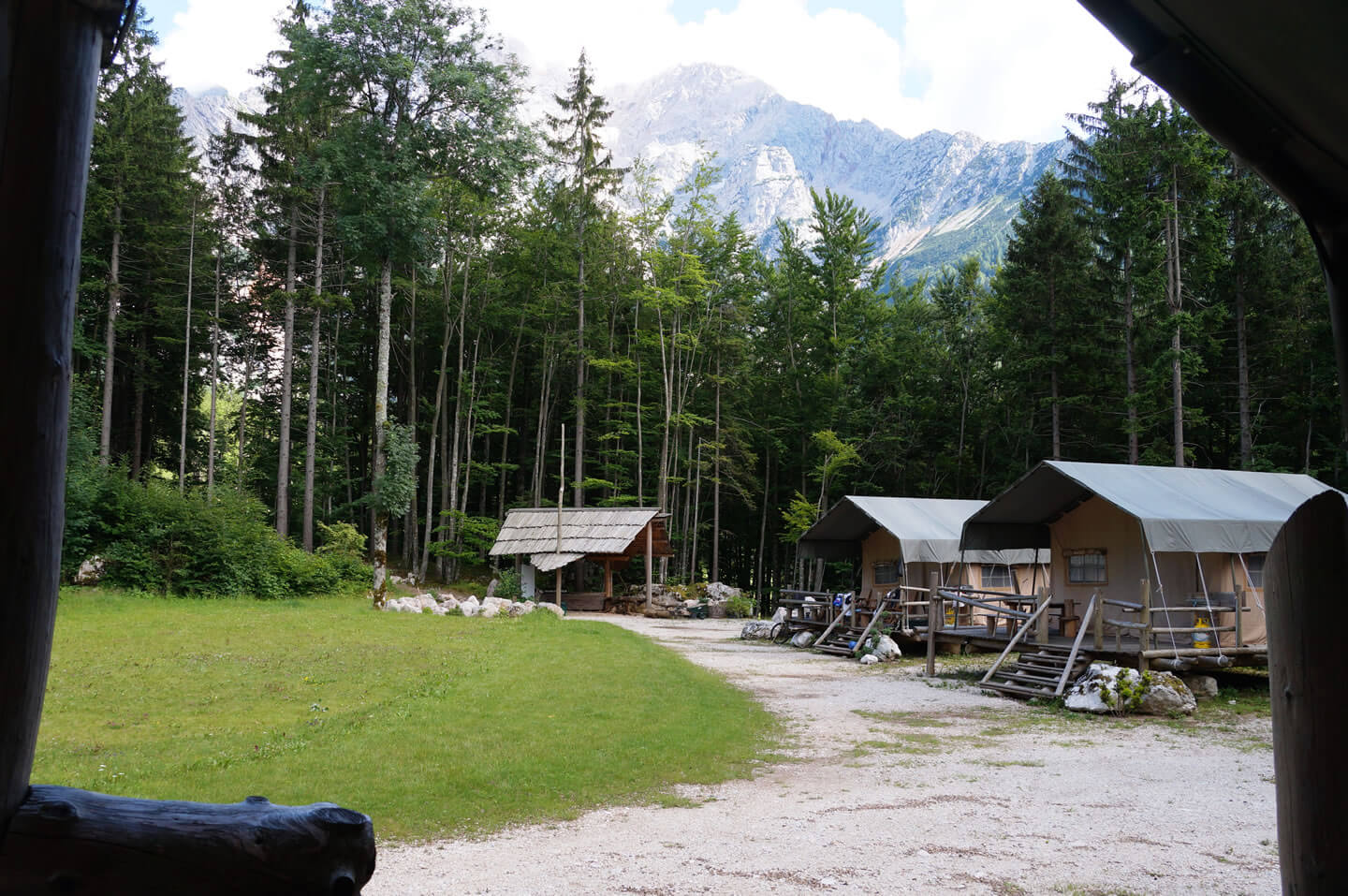 Die Gemeinschaftsduschen und -toiletten befinden sich ca. 50 m vom Glampingpark entfernt, ebenso der Parkplatz. Der Glampingpark ist eine lärm-, internet- und autofreie Zone.Familienurlaub in den slowenischen Alpen