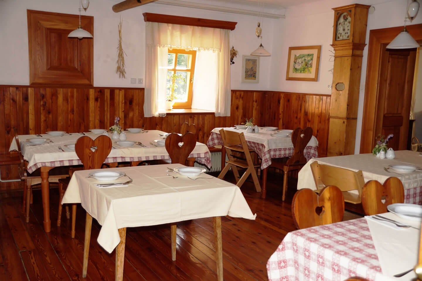 - Reichhaltiges Frühstücksbuffet u.a. mit duftendem Kräutertee, frisch gebackenem Brot, selbst gemachten Konfitüren und Aufstrichen, leckerem Käse und Eiern von den hauseigenen Hühnern