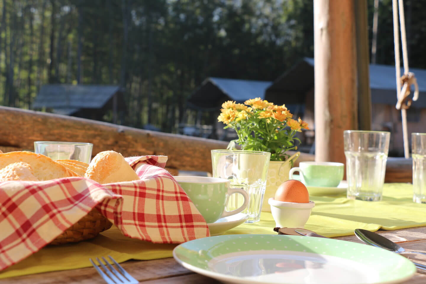 - Frühstück für Glampinggäste pro Essen: 15 € Erwachsene, 10 € Kind (buchbar und zahlbar vor Ort)
