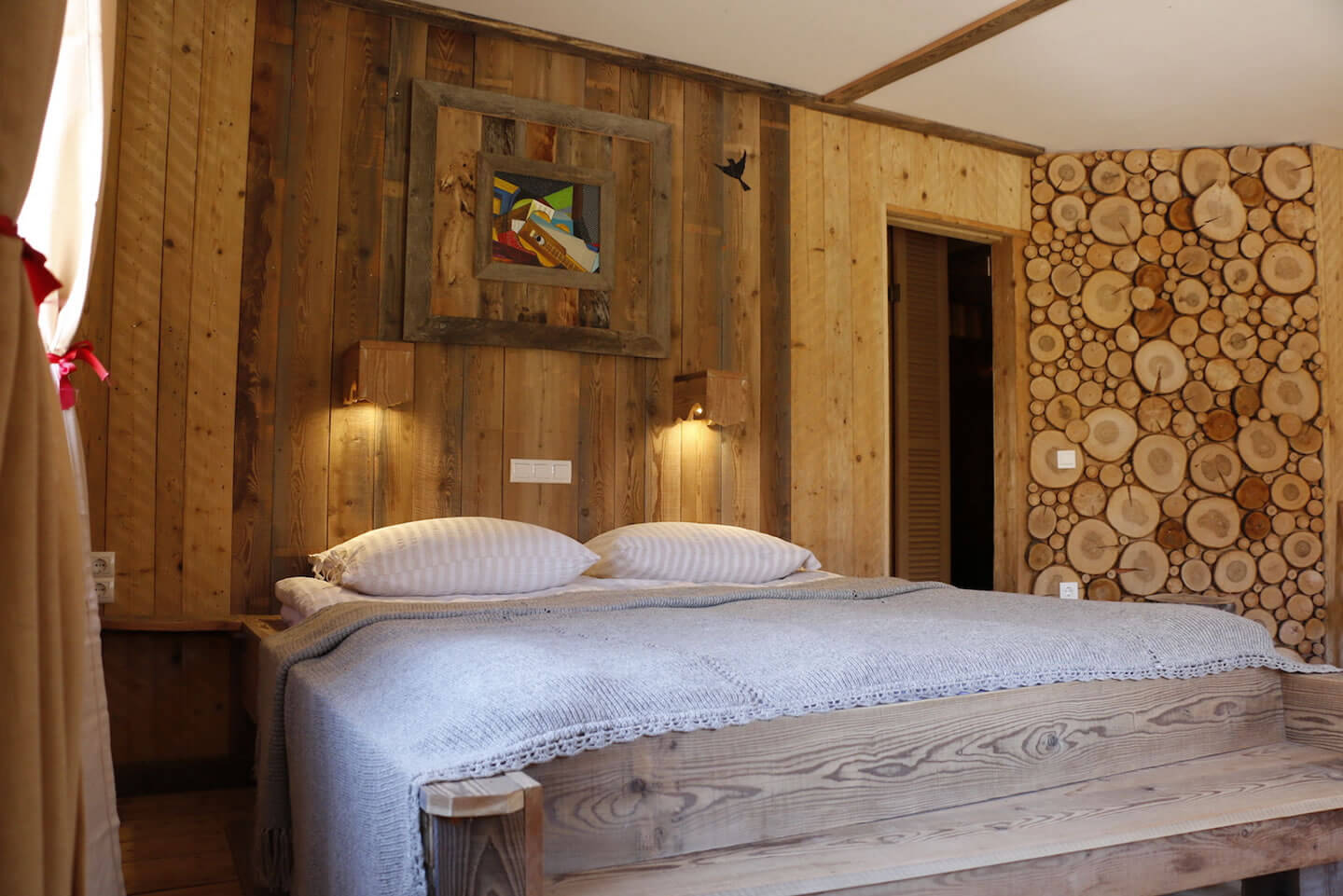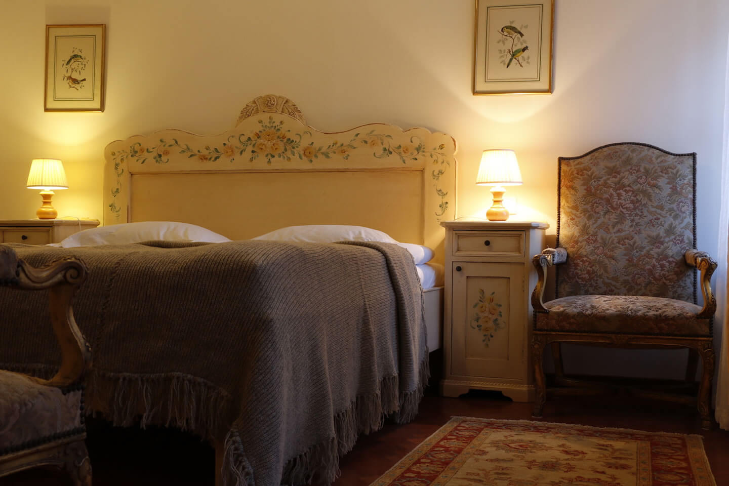 Die Gästezimmer sind unter Berücksichtigung der ursprünglichen Architektur nachhaltig und authentisch restauriert. Verwendet wurden viele Naturmaterialien wie z.B. heimisches Lärchenholz für die Wände und Pfeiler und Schafwolle für die Isolierung. Ausgestattet sind die Zimmer u.a. mit hochwertigen Vollholzmöbeln, Wollteppichen und traditionellen Parkettböden. Jedes Doppel- bzw. Familienzimmer verfügt über ein Badezimmer mit Dusche/WC, Minibar, Satellitenfernseher und WLAN-Empfang bzw. ADSL-Internetanschluss. Einige Zimmer besitzen zusätzlich einen Schreibtisch und einen Safe.