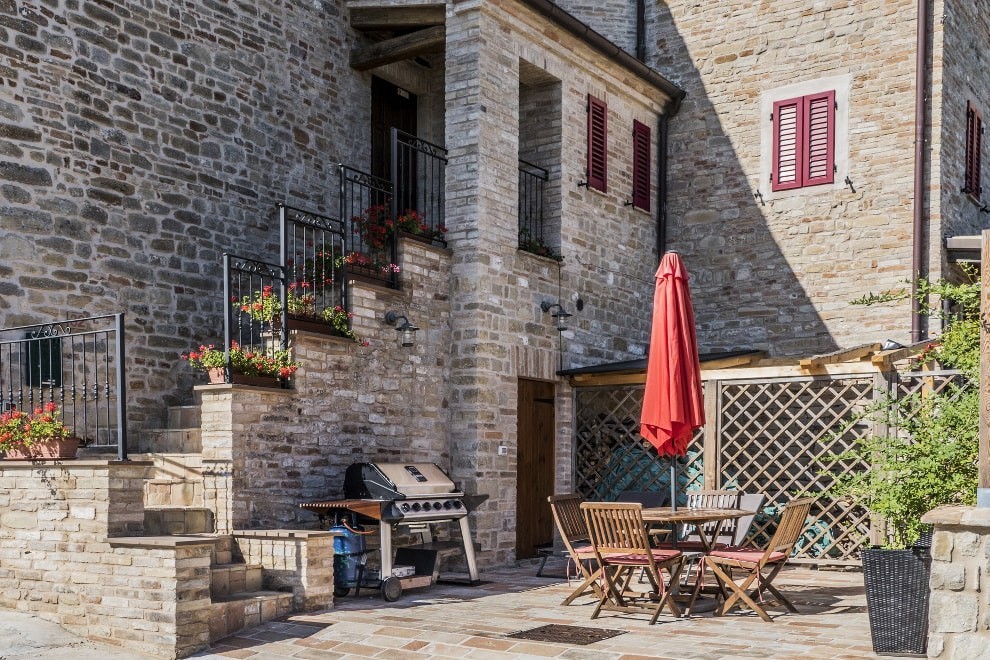 Freizeit und Umgebung- Das Boutique-Hotel liegt am Rande eines kleinen mittelalterlichen Orts in den Vorläufern der Sibillinischen Berge. Der Ort hat aufgrund der Bebauung nur enge Straßen. Beim Hotel gibt es einen Parkplatz.