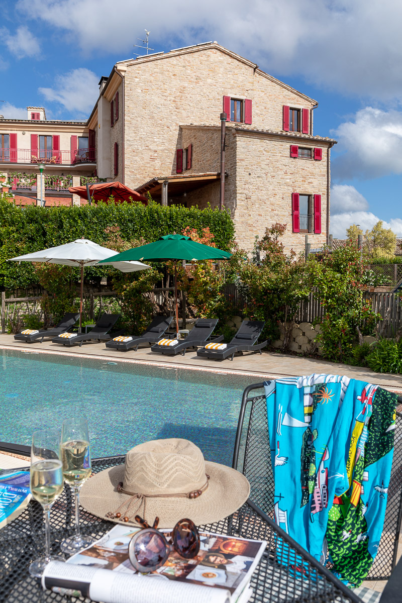 Das wunderschöne, kleine Boutique-Hotel liegt in einem beschaulichen Dorf mit nicht einmal 1.000 ständigen Einwohnern. Das Haus wurde Anfang des 16. Jahrhunderts von einer Adelsfamilie erbaut und Anfang des 19. Jahrhunderts um ein Stockwerk erweitert, um es auch schon damals als Hotel nutzen zu können. Nachdem der frühere Besitzer das Hotel aufgegeben hatte, stand es inklusive des alten Inventars lange Zeit leer, bis die heutigen Eigentümer das Kleinod im Herzen der italienischen Marken wieder entdeckten. Sie beschlossen, das Hotel stilvoll und mit viel Liebe zum Detail zu einem Palast der Ruhe und Erholung zu gestalten. Ihr Motto ist: jeder Gast soll sich wie zu Hause fühlen und noch ein bisschen mehr.