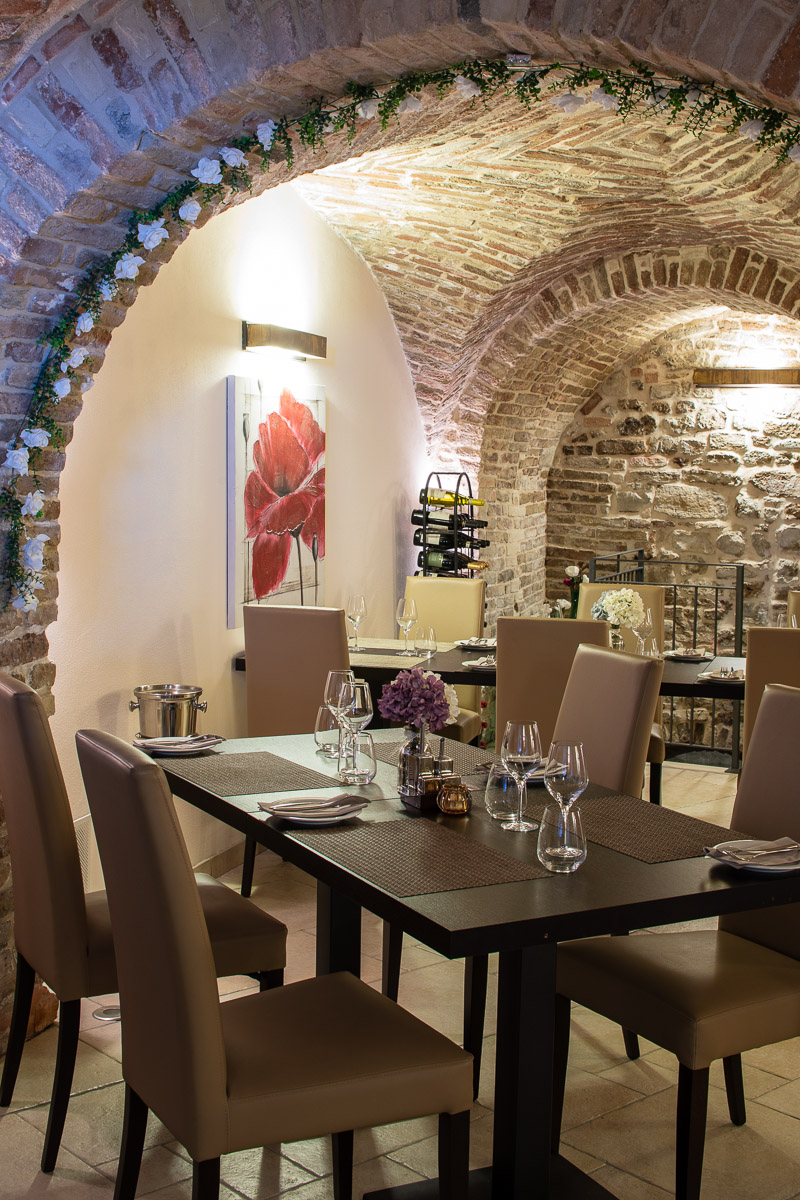 Die marchigianische Küche ist generell gekennzeichnet durch erstklassige, regionale und frische Zutaten mit einem Minimum an dekorativem Drumherum. Das Essen in unserem Boutique-Hotel wandelt sich je nach Jahreszeit - um immer ein Maximum an regionalen Lebensmitteln zu verwenden. Möglichst alle Lebensmittel werden von Anbietern aus der näheren Umgebung erworben, das Obst und Gemüse kommt aus einem Bio-Betrieb nahe des Öko-Hotels. Ihre Gastgeber kreieren kulinarische Highlights aus klassischer marchigianischer Küche gemischt mit internationalen Einflüssen. Jeden Abend können Sie sich Ihr Menü aus der reichhaltigen Karte zusammenstellen und mit einem Wein aus dem umfangreichen Weinkeller kombinieren. Der Weinkeller umfasst vorwiegend lokale Weine von hoher Qualität. Lassen Sie sich von den Kreationen des Küchenchefs überraschen!