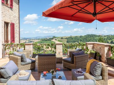 Landschaft der Marken. Das gesamte Haus ist stilvoll eingerichtet, die Zimmer groß