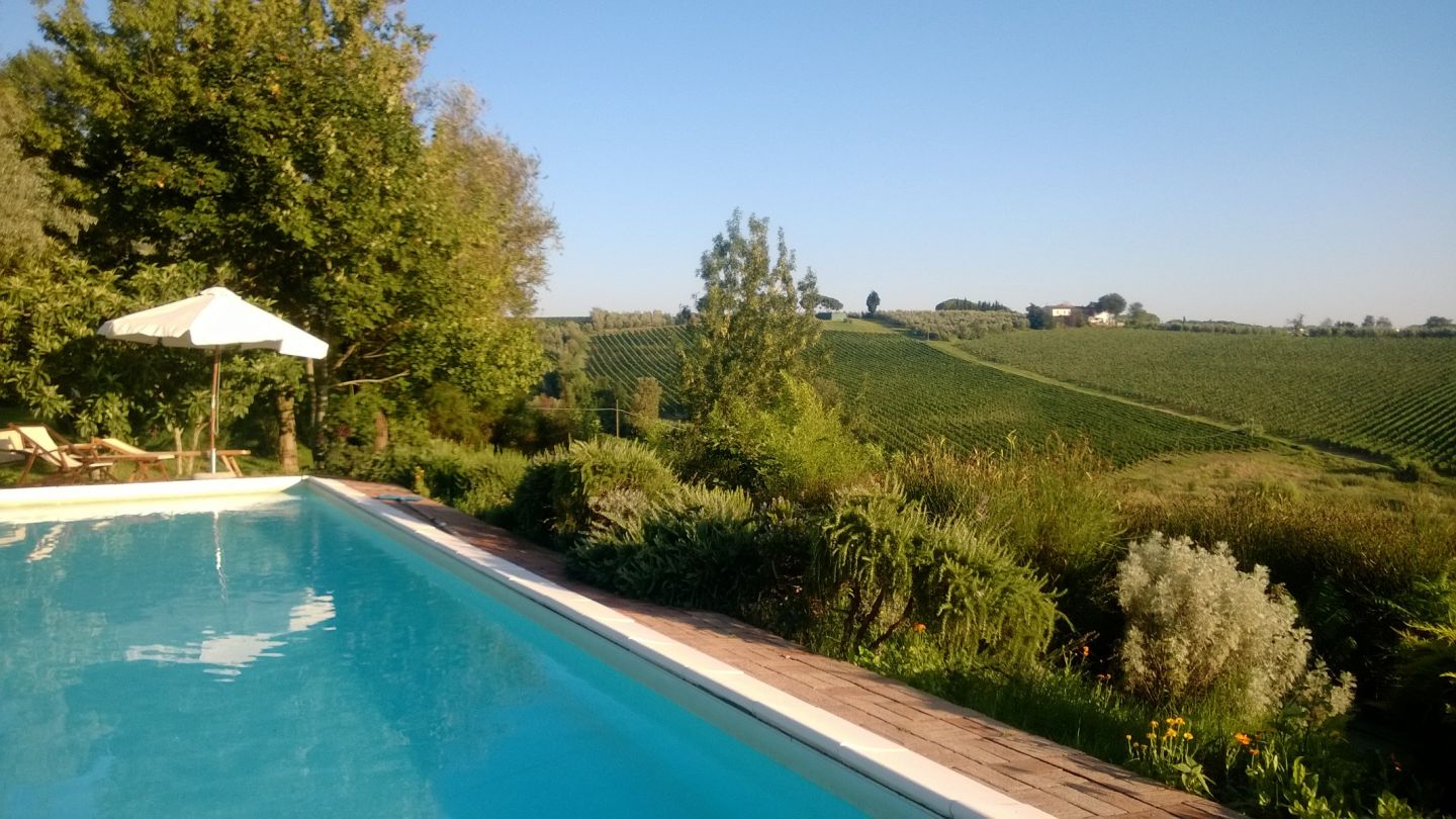 K. B.08.09.2014Das Erste was wir von unserem Agriturismo gesehen haben war Roberto Falzaris freundliches Lächeln als er unsere suchenden Blicke aus dem Auto bemerkt hat. Ein fragendes "Agriturismo?" von ihm, ein erleichtertes Nicken von uns und schon hat er uns in einen kleinen Parkplatz unter ein paar alten Olivenbäumen eingewunken. Beim Aussteigen hatten wir das Gefühl in einer Filmkulisse angekommen zu sein. Ein blauer Pool glitzerte in der Sonne auf einer Anhöhe vor sanften Hügeln voller Weinstöcke. Das nächste Gebäude in Sicht war in weiter Ferne das Agriturismo auf dem Hügel gegenüber. Mein Mann und ich atmeten den Duft von wilder Minze und Rosmarin, hörten Roberto etwas erzählen über eine Führung durch seine Weinberge und ein Abendessen für die Gäste bei seiner Frau Kristina mit Weinverkostung und haben uns ganz kurz gefragt was die Kinder hier wohl machen würden so ganz ohne Rutsche im Pool....aber wirklich nur ganz kurz, die Kinder haben sich sofort begeistert auf Robertos Katzen gestürzt, haben die Roller aus dem Auto gepackt und sind auf und ab gedüst und bis zum Abend hatten sie dicke Freundschaft geschlossen mit den Kindern der anderen Urlaubsgäste und sind freudig johlend durch die Büsche getollt. Der Wein von Roberto und seinem Bruder Sergio war hervorragend, das selbstgemachte Olivenöl aus von Hand geernteten Oliven ebenfalls, die Führung durch die Weinberge auch für Kenner ausserordentlich informativ, Kristinas Abendessen ausgezeichnet, der Pool auch nachts eine Oase der Entspannung bzw ein Spassbad, je nachdem ob die Kinder grade drin waren oder nicht, Robertos Restauranttip für ein echtes Florentiner Steak eine Gaumenfreude und der Ausflug ins Leonardo Museum in Vinci ein ganz besonderes Erlebnis für die Kinder. Besonderer Tipp: In Vinci unbedingt das Karamelleis mit Pinienkernen probieren !Toskana: wunderbares Urlaubsziel