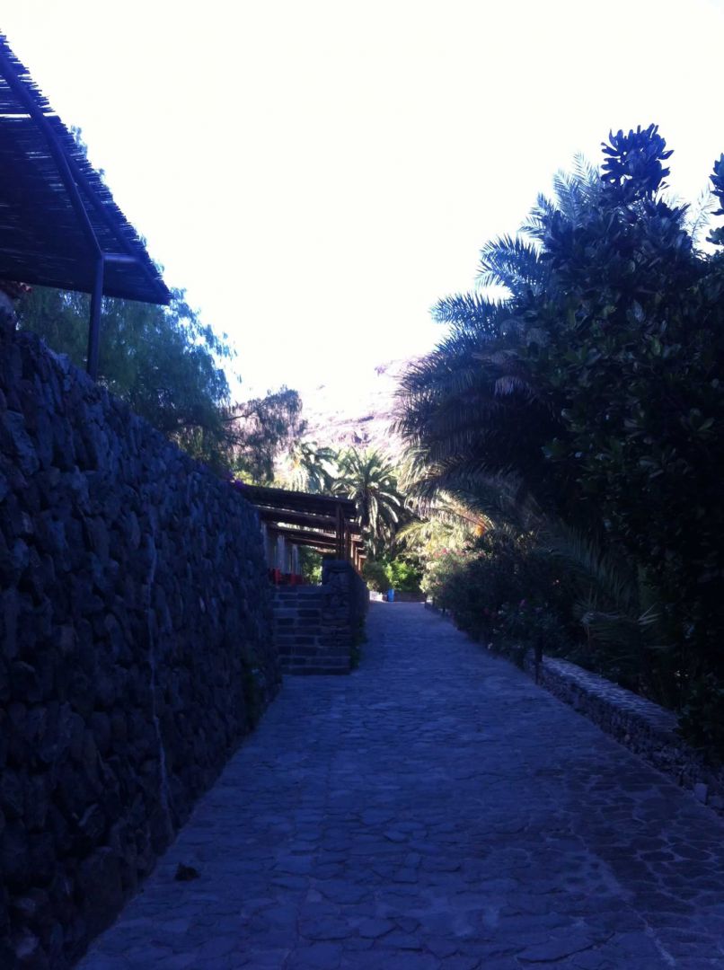 Freizeit und Umgebung- Das Fincahotel auf La Gomera bietet einen ca. 400 m langen Steinstrand (großteils große Steine) mit Sonnenschirmen, Liegen, Toiletten und Süßwasserduschen. Je nach Wellengang wird manchmal auch schwarzer Lavasand an den Strand gespült bzw. wieder weggespült.