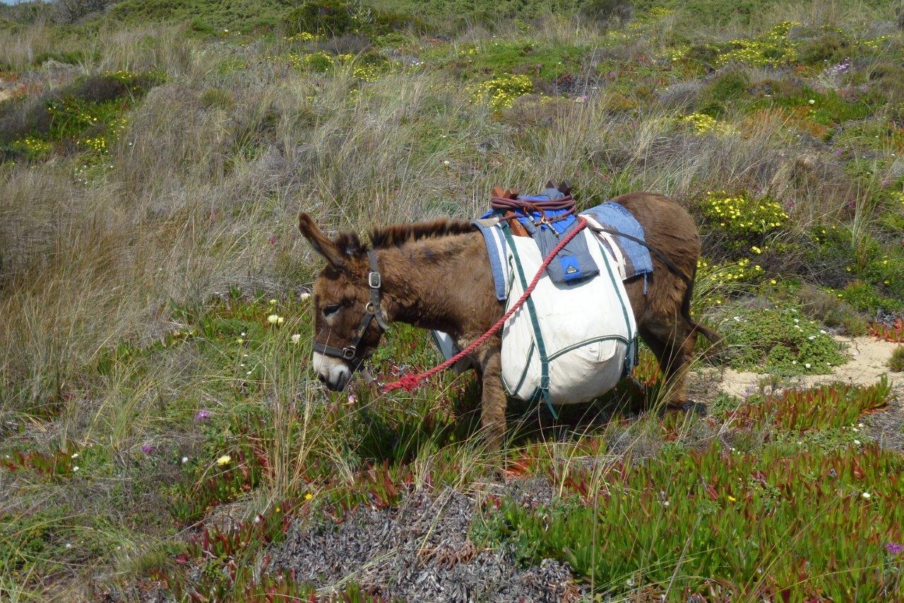 Unsere einwöchige Eselwanderung führt auf dem ersten Teil über Wald- und Feldweg durch das von Hügeln, Wäldern und Feldern geprägte Hinterland entlang des Flusses Seixe bis ans Meer. Im zweiten Teil geht es durch den Naturpark "Costa Vicentina" entlang der imposanten Steilküste, die tolle Weitblicke verspricht. Zwischen den Felsen laden versteckte Buchten und Strände zu Pausen und Badestopps ein. Die Etappen sind zwischen 7-15 km lang mit einer mittleren Gehzeit von bis zu 5 Stunden (ohne Pausen).