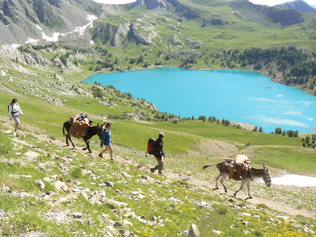 Die Wegstrecken sind teilweise anspruchsvoll aber mit ein bisschen Basiskondition absolut machbar.Esel Trecking in den französischen Seealpen mit Hunden