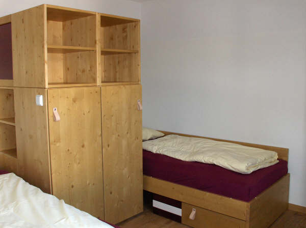 Die einfach ausgestatte Jugendpension hat Doppel- und Mehrbettzimmer (meist Stockbetten), z. T. mit Waschbecken. Ausreichend Duschen und WCs sind auf der Etage vorhanden. Jede Familie bekommt ein eigenes Zimmer. Familien mit einem Erwachsenen teilen sich das Zimmer evtl. mit einer zweiten Klein-Familie. Auch eine kleine Anzahl von Doppelzimmern mit DU/WC (gegen Aufpreis), zwei gemütliche Aufenthaltsräume, ein beheizter Skistall und ein großer Mehrzweckraum (Tischtennis, Haus-Disco) stehen zur Verfügung. Einen Zimmer-Service gibt es nicht.