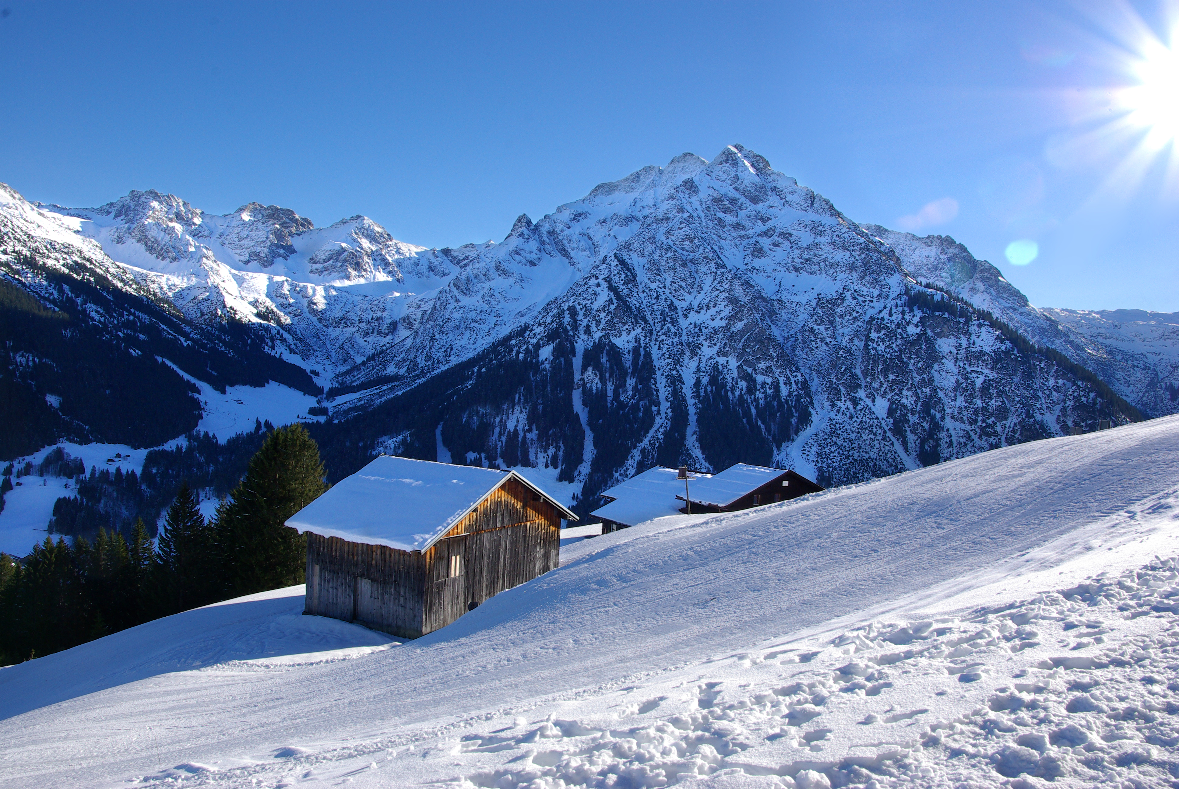 Klima- Die Höhenlage und die günstige Nordwest-Staulage am Nordrand der Alpen machen das Kleinwalsertal zu einem "Schneeloch", in dem es vorallem von Dezember bis April häufiger schneit.