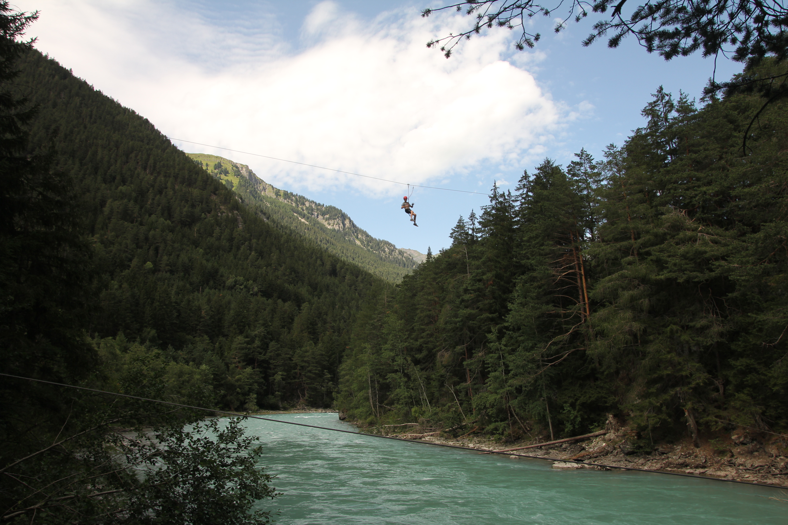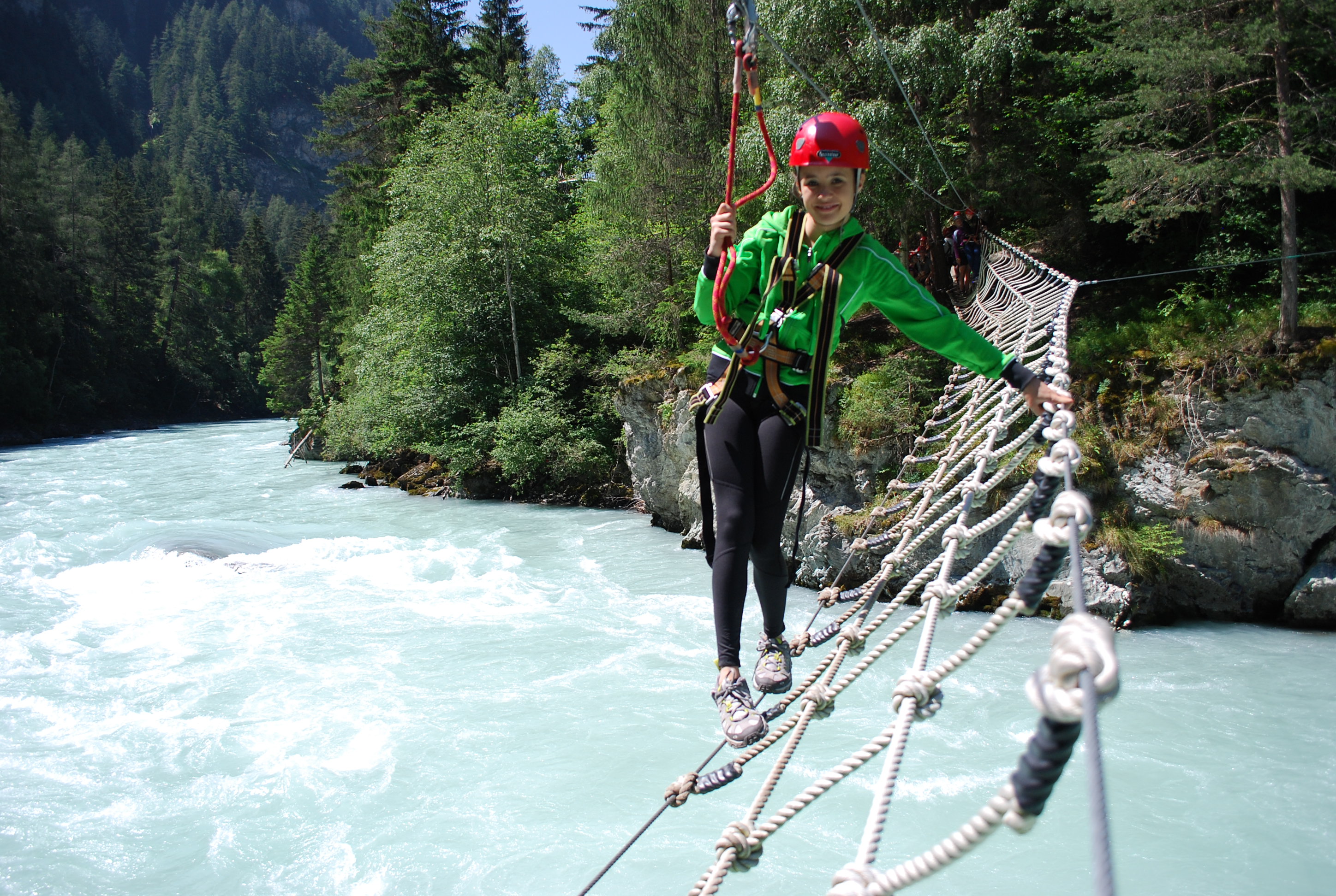 Beim Adventurepark begeht ihr die Samnaun-Schlucht mit Hilfe von Klettersteigsicherungen. Ihr klettert an der Felswand, durchquert wilde Bäche und überwindet Seilbrücken. Die Himmelsleiter bringt euch in luftige Höhen, bevor ihr zum Schluss von der 35 Meter hohen Brücke abgeseilt werden. An diesem Tag kommt ihr hoch hinaus Dauer: ca. 3 Stunden.