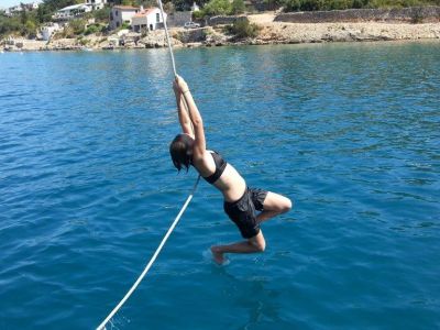 Eva L.30.08.2021An der Marina waren die Mitreisenden schnell erkannt an ihren aufgeregten Mienen. Nach dem ersten gemeinsamen Essen im Hafen waren wir sicher: das kann eine tolle Woche werden. Wie toll, würden wir erst im Nachhinein wissen. Unser Skipper Thomas war zu allen Schandtaten bereit und hatte tägliche Highlights im Hinterkopf, um neben dem Segeln allen Abenteuerlustigen viel Abwechslung zu ermöglichen. Wir durften von Klippen springen, wer wollte bis zu 20 m tief, konnten auf den Mastbaum klettern und von oben den Blick in weite Ferne genießen, durften im waghalsigen Manöver von Bord schwingen und ins Wasser tauchen, jederzeit Badestopps einlegen und ganz unseren Wünschen entsprechend im kleinen einsamen Buchten ankern. Und nebenbei wurde aus einer Gruppe von zehn Fremden ein echtes Team, kamen gute Gespräche und lustige Spielrunden zu Stande, wurde lecker gegessen und gut geschlafen. Die Bora machte den letzten Tag zum besonderen Abenteuer, weckte uns schon früh um vier und erforderte Mut und die neu gelernten Fähigkeiten, um schließlich wieder sicher in der Marina anzukommen. Uns allen wird diese Woche auf ewig im Gedächtnis bleiben!Kroatien auf dem Segelschiff, die andere Perspektive