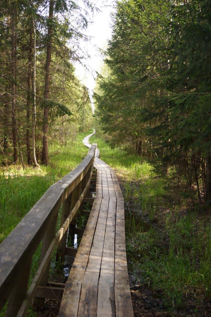 Am Vormittag erkunden wir das riesige Hochmoor auf ganz traditionelle Art und Weise. Wir wandern mit Hilfe von Moorschuhen, die so konstruiert sind, dass wir beim Laufen trotz schwankenden Bodens nicht einsinken können. In sogenannten Moorkolken, kleine Gewässer von dunkler Farbe, können wir ein Bad nehmen. Am Abend werden wir unsere tierischen Freunde wie Hirsche, Elche oder auch Rehe bei einer kleinen Wanderung durch den Wald wieder treffen.