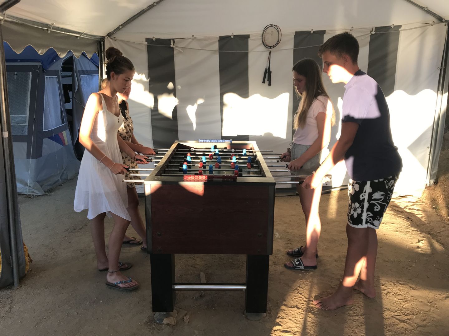 Die Einrichtungen des Campingplatzes (Spielplatz, Tischtennis, Swimmingpool, Bouleplatz) ermöglichen Kindern und Erwachsenen kurzweilige Beschäftigung auch auf dem Platz. Zusätzlich zu den bestehenden Sanitärbereichen auf dem Campingplatz wurde ein kleiner Sanitärblock exklusiv für die Gruppe direkt beim Camp gebaut, was vor allem nachts sehr angenehm ist. Der Campingplatz bietet außerdem Waschmaschinen, einen Minishop und ein nettes Bistro mit Blick über den Platz aufs Meer.Die Verpflegung im Familienurlaub auf Korsika