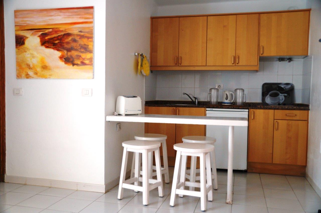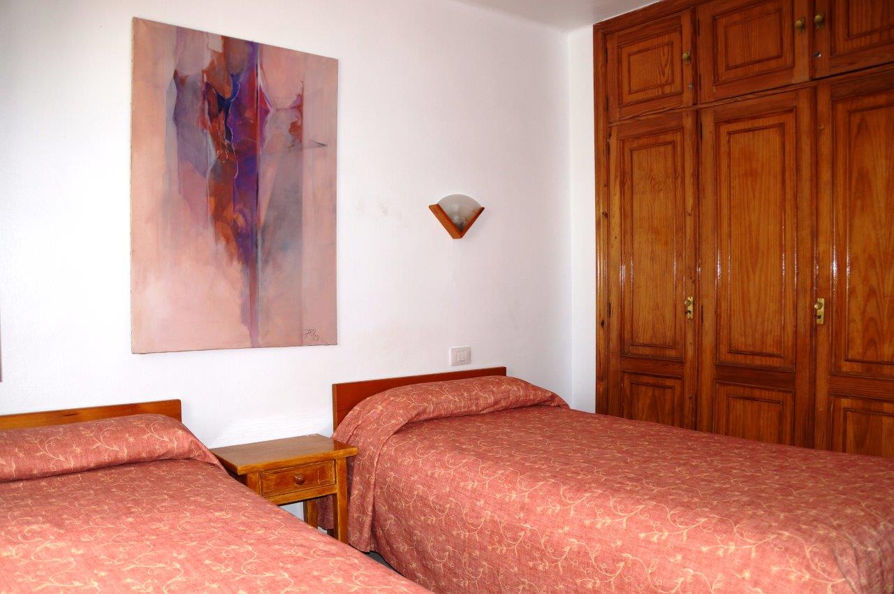 Inmitten eines subtropisch bepflanzten Gartens stehen den Gästen 52 geschmackvoll eingerichtete Appartements zur Verfügung, alle mit Balkon oder Terrasse, die meisten in Südlage – in den oberen Stockwerken mit Meerblick. Jedes der ca. 40-50 qm großen Appartements besteht aus einem Wohnbereich mit Schlafsofa für 2 Personen, kleiner Küche, 1-2 Schlafzimmern für jeweils 2 Personen und einem Badezimmer. Ein Appartement ist für die Bedürfnisse von Rollstuhlfahrenden umgebaut. Einige wenige Einzelzimmer teilen sich jeweils zu zweit die Küche und das Badezimmer. Die Wohneinheiten gruppieren sich um zwei Süßwasserpools mit Kinderplanschbecken und Sandkasten.Kinderbetreuung - Raum für Kinder