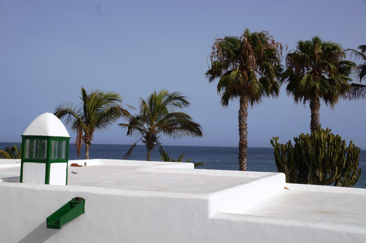 Klima- Auf der Insel Lanzarote herrscht das ganze Jahr über ein niederschlagsarmes und mildes Klima. Die sehr flache Landschaft ist dafür verantwortlich, dass Wolken einfach über die Insel hinweg ziehen und nicht abregnen. Niederschläge beschränken sich hauptsächlich auf die Monate Januar bis März, so dass der Rest des Jahres fast niederschlagsfrei bleibt. Die Wolken, die sich über dem höchsten Punkt der Insel, dem Famaramassiv, stauen, regnen zwar meistens nicht ab, bilden aber eine gewisse Luftfeuchtigkeit, die für die Landwirtschaft genutzt wird. Diese Feuchtigkeit reicht auch aus, Gebiete wie zum Beispiel das Tal der 1.000 Palmen zu erhalten. Die Vulkaninsel Lanzarote liegt in einer Passatzone. Die frischen Winde machen höhere Sommertemperaturen leichter erträglich und gestalten einen Aufenthalt, auch für wetterfühlige Menschen, als sehr angenehm. Trotz allem kann man auch einmal von sehr hohen Temperaturen überrascht werden. Die geringe Entfernung zur Sahara macht sich auf Lanzarote manchmal bemerkbar, indem mit heißen Winden Staubpartikel durch die Thermik bis auf die Insel transportiert werden und den Menschen im wahrsten Sinnen des Wortes die Sicht rauben. Dieses Wetterphänomen wird von den Einheimischen "Calima" genannt, kommt aber eher selten vor.