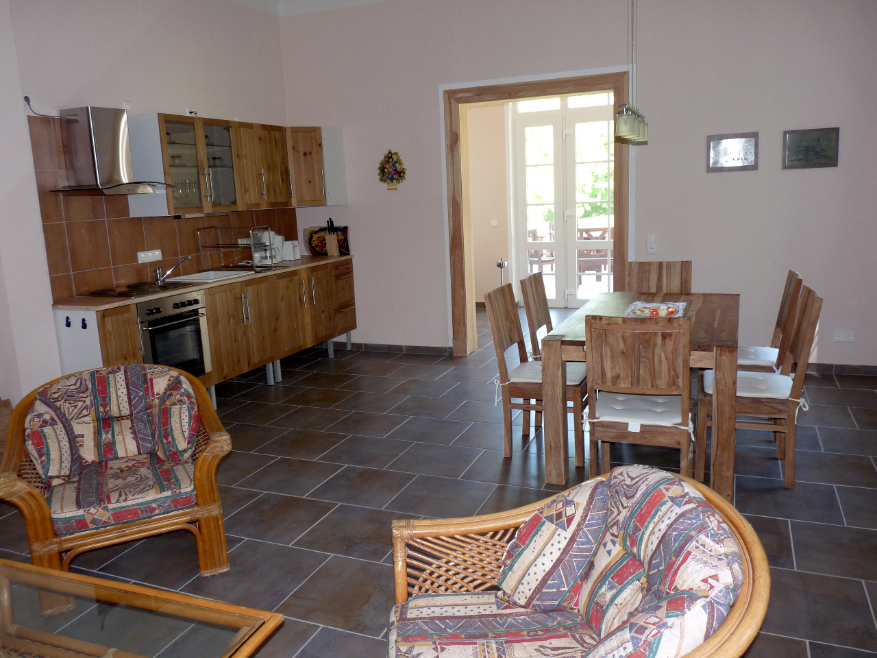 Alle Wohnungen verfügen über eigene Küchen bzw. Küchenzeilen zur Selbstversorgung. So können Sie den Speiseplan individuell nach Ihren Wünschen gestalten. In den Ferienzeiten gibt es einen morgendlichen Brötchenservice an der Rezeption. Auch ein Gemeinschaftsgrill und ein großer Holzbackofen für Pizza und frisches Brot stehen nach Absprache zur Verfügung. Große Supermärkte und weitere Geschäfte mit Artikeln für den täglichen Bedarf sind ca. 8 Kilometer entfernt. Frisches Gemüse, fangfrischen Fisch aus der Ostsee und den Seen der Umgebung, sowie sonstige regionale Produkte erhalten Sie im direkten Straßenverkauf und auf den Wochenmärkten der umliegenden Orte.