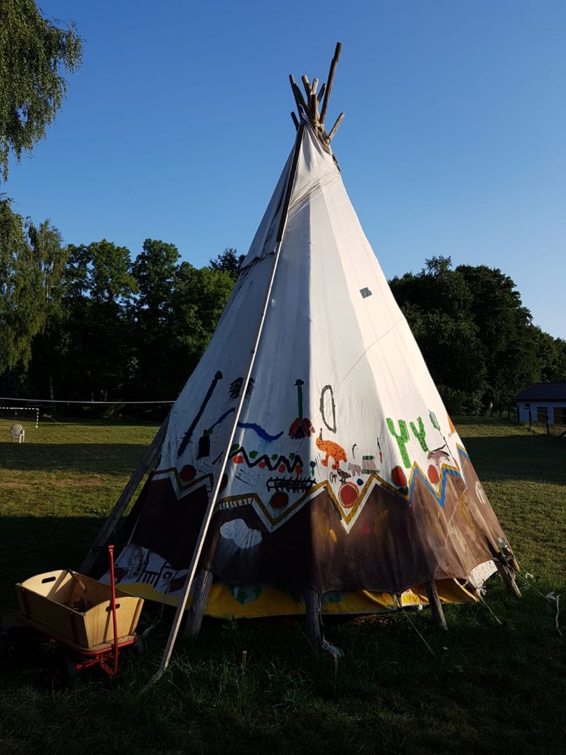 - Einrichtungen und mögliche Aktivitäten vor Ort und in der Nähe: Naturspielplatz, große Spielwiesen, schöner Gemeinschaftsraum und Indianertipi, Volleyballfeld, Basketballkorb, Bolzplatz, Reiten (Ausritte und Reitunterricht gegen Entgelt)