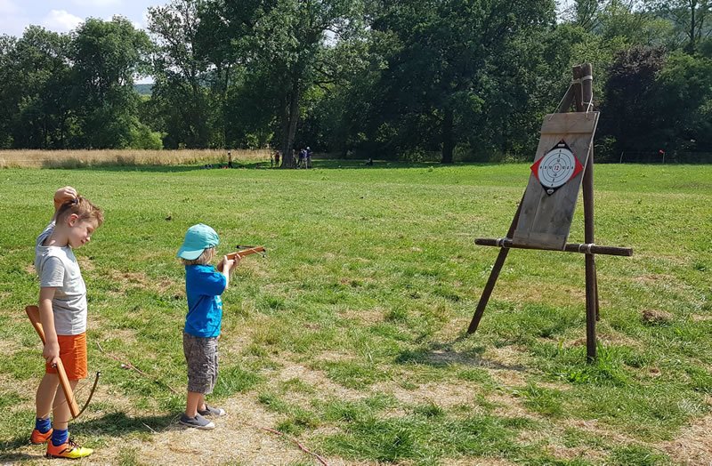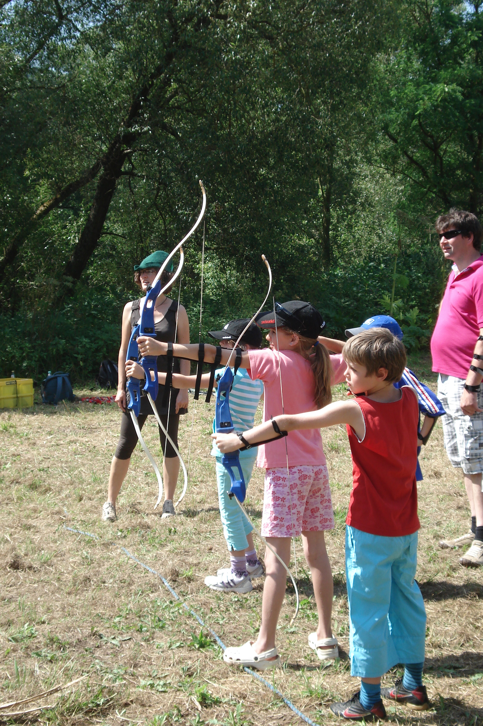 Baumklettern und Bogenschießen: Eure Kinder und auch ihr könnt an Klettergriffen (Monkeys) zwei uralte dicke Pappeln hochklettern! Spezielle Routen für die Zwerge und für Erwachsene stehen zur Verfügung. Gut gesichert geht es nach einer ausführlichen Einweisung nach oben. Bogenschießen für Groß & Klein: auch die Kleinsten können hier mit speziellen Pfeilen mit Saugnäpfen und kleinen Bögen wie die Indianer schießen und ihre Treffsicherheit unter Beweis stellen. Für die größeren Kinder stehen spezielle Kinderbogensets und für Eltern professionelle Sportbögen zur Verfügung. Der Abenteuertag findet auf einer Flussinsel des Campingplatzes statt.