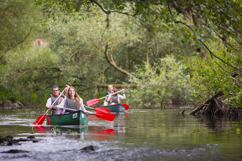 Abenteuer Nahemühle: Erklettert die Pappeln auf der Flussinsel an verschiedenen "Monkey-Routen" – immer gut gesichert! Ihr erhaltet eine ausführliche Einweisung ins Sichern und Ablassen und könnt dann an richtigen Klettergriffen die Bäume hochklettern und auch erste Erfahrungen im Abseilen sammeln. Anschließend übt Ihr Euch wie Robin Hood im Bogenschießen mit professionellen Sportbögen für Kinder und Erwachsene. Das Programm findet direkt auf dem Campingplatz-Gelände auf einer abenteuerlichen Flussinsel statt.Kanutour Glan: Erlebt einen der schönsten und weitgehend naturbelassenen Abschnitt von Meisenheim nach Odernheim. Der Glan fließt mit etwas Strömung durch ursprüngliche Wiesenlandschaften, an einigen Stellen ist etwas paddeltechnisches Geschick erforderlich, richtig schwierig wird es jedoch nicht. Im Teamwork sind ein oder zwei Wehre zu umtragen. In Meisenheim könnt Ihr dann anschließend selbstständig noch die urgemütliche Altstadt mit vielen Fachwerkhäusern, engen Gassen und Eisdielen/Biergärten erkunden. Sollte die Kanutour auf diesem Abschnitt aus naturschutzrechtlichen Gründen bzw. Niedrigwasser nicht durchführbar sein, wird die Streckenführung geändert.