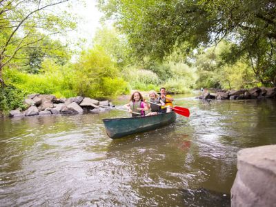 Berg und Fluss erleben: Das erste Ziel des heutigen Tages ist der Weinberg "Monzinger Frühlingsplätzchen", der sich direkt beim Campingplatz befindet. Auf einem abenteuerlichen Pfad, auf dem möglicherweise auch ein Schatz versteckt sein könnte, geht es fast 100 Höhenmeter nach oben. Dort erwartet euch eine atemberaubende Aussicht über das Nahetal und ein Picknickplatz, der zum längeren Verweilen einlädt. Anschließend kehren wir zum Campingplatz bzw. zum "Nahe-Beach" zurück. Dort erwarten euch verschiedene Spiele an einem Strand mit Kieselsteinen und seichtem Wasser. Ein absolutes Highlight, nicht nur für die Kleinen, ist das Rivertubing auf der Nahe.Flußpiraten-Kanutour auf dem Glan: Flussabenteuer auf einem schönen und weitgehend naturbelassenen Abschnitt des Glan bei Meisenheim! Ihr paddelt entgegen einer nur ganz leichten Strömung und lasst euch anschließend gemütlich wieder zurücktreiben. Ihr erlernt spielerisch die Grundlagen des Kanufahrens. Die Zwerge sitzen bei euch mit im Boot und können - müssen aber nicht - mitpaddeln. Die Dauer der Kanutour kann je nach Wetter und Durchhaltevermögen der Kleinen flexibel sein. Eine kurze Pause in Meisenheim mit seiner gemütlichen Altstadt verspricht Erholung vom Paddeln.