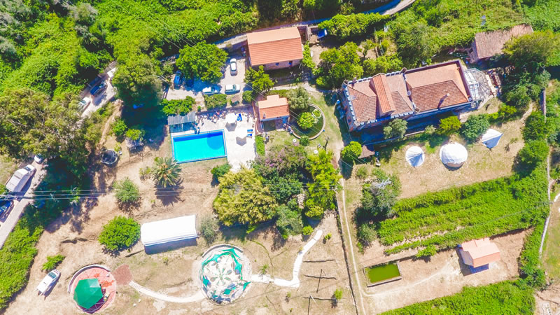 Die Quinta selbst ist ein uriges altes Gebäude, das wunderschön im Landesinneren und etwas außerhalb von Monchique gelegen ist. Das dazugehörige Gelände ist weitläufig und es gibt einen großen Pool für Schwimmer. In der Nähe des Pools steht ein Trampolin und ein tolles, mehrgeschossiges Baumhaus.