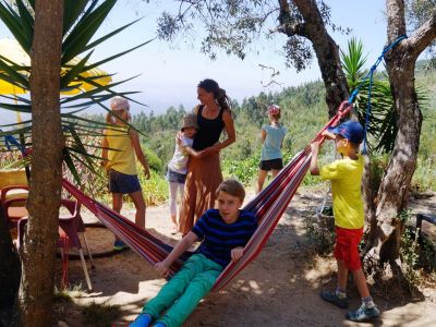 Familienurlaub in Portugal: Genießen Sie unvergessliche Sommertage in der Serra de Monchique im Südwesten der Algarve. Die Unterkunft befindet sich in einem ehemaligen Landhaus mit Pool und großem, wilden Garten. Ein Aktivurlaub mit Kindern im Alter von 5-14 Jahren mit Kreativwerkstatt, Wandern, Mountainbiken, Wellenreiten, Yoga, Massagen... Zusätzlich im Oktober AcroYoga gemeinsam für Eltern und Kinder ab 4 Jahre.