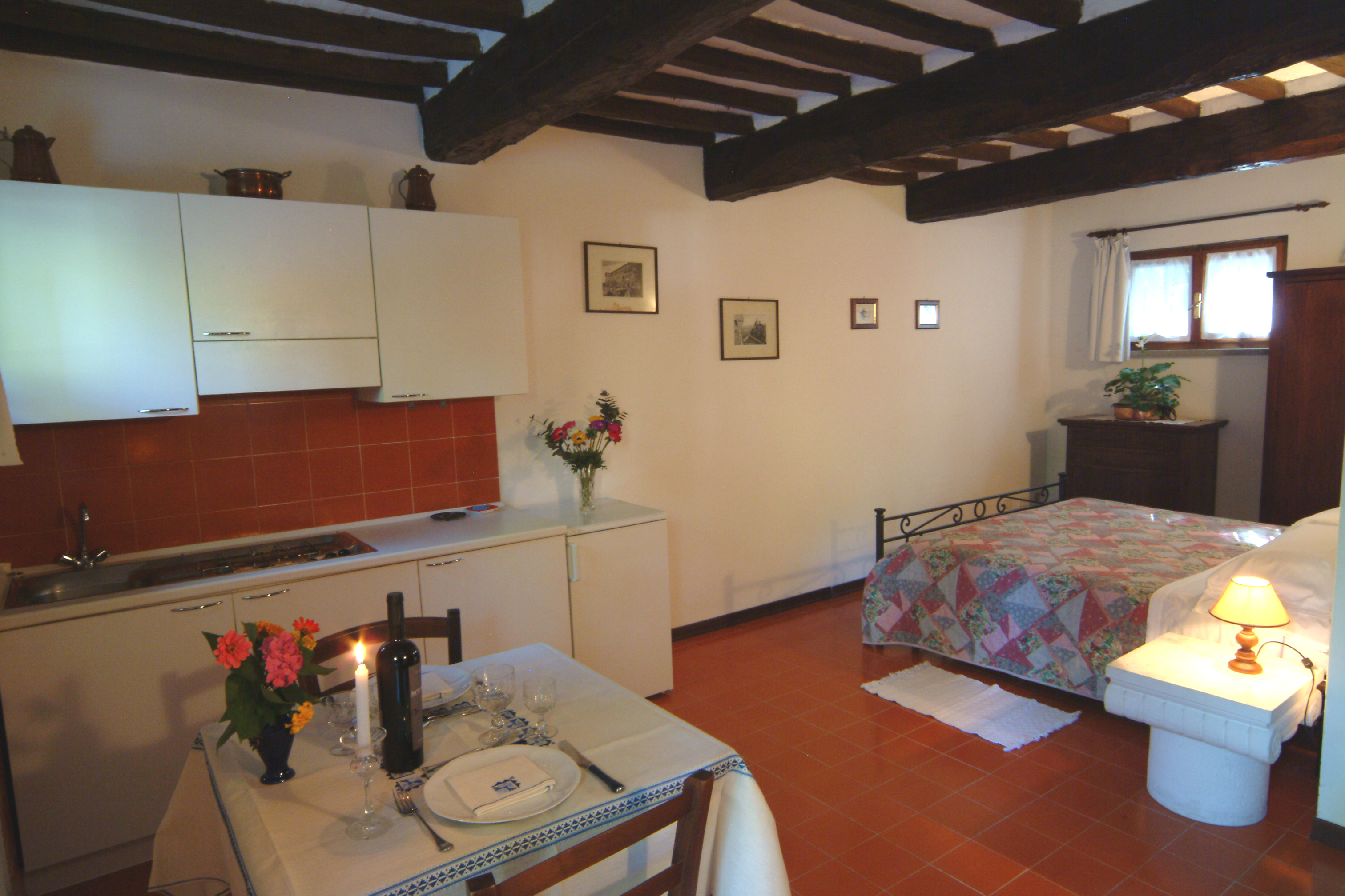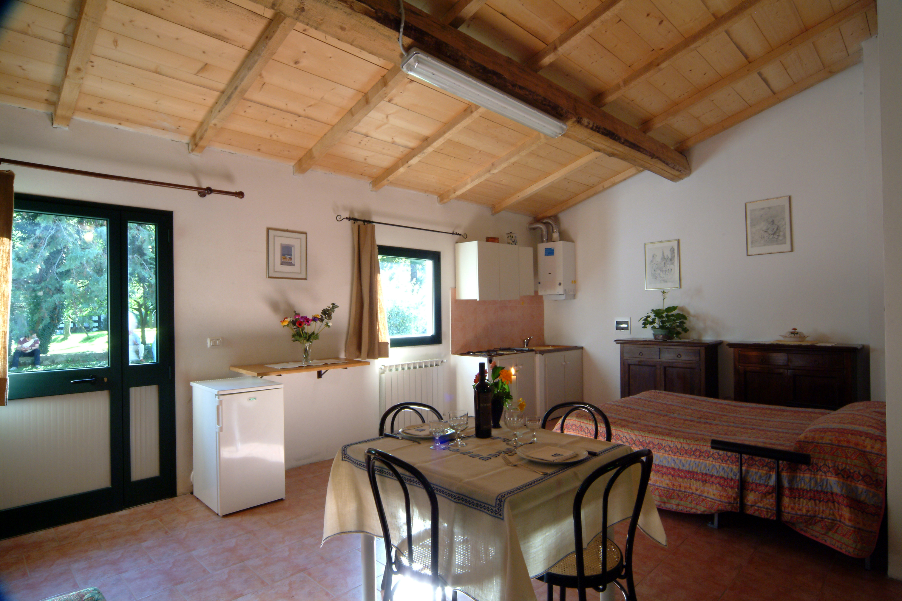 Die einfach aber funktional eingerichteten Wohnungen verfügen über gut ausgestattete Küchen zur Selbstversorgung. Auch Gemeinschaftsgrills stehen zur Verfügung. Wer möchte, kann direkt vor Ort bei der Betreiberin sein Frühstück buchen. In Montone oder dem ebenfalls nur fünf Autominuten entfernten Umbertide finden Sie alle Geschäfte für den täglichen Bedarf, mehrere Bäcker und Supermärkte. Frisches Gemüse und sonstige regionale Produkte erhalten Sie auf den Märkten der umgebenden Dörfer. Eine der Hauptattraktionen von Il Mulino ist jedoch die von Signora Antonella mit großer Hingabe betriebene hauseigene Trattoria. Hier werden die Gäste mit köstlichen umbrischen Spezialitäten und Weinen verwöhnt. Fleischlose Menüs können leider nicht angeboten werden.