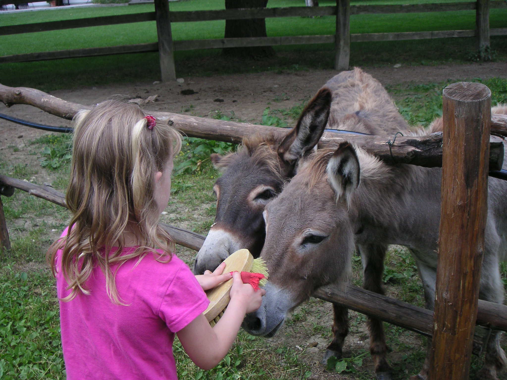 - Kleine Pony- und Eselherde; Kinder können nach Absprache die Tiere füttern, streicheln und putzen