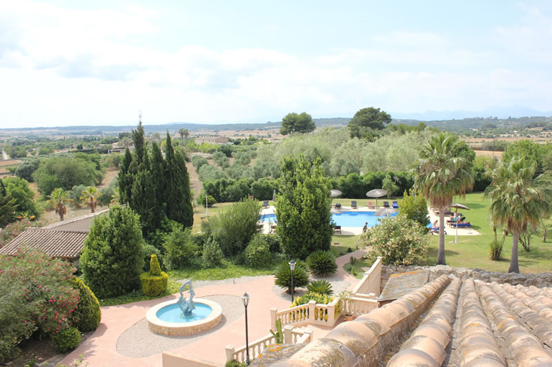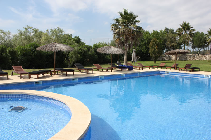 Von der weitläufigen Poolanlage der Finca Son Manera genießen Sie den Blick übers Land und auf den Ort Montuiri. Es handelt sich um einen Salzwasserpool – gut zur Haut, gut zur Umwelt.