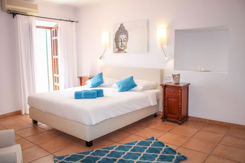 25 geräumige, helle und im mallorquinisch-modernen Stil eingerichtete Zimmer verteilen sich auf Einzelzimmer (ca. 13-16 qm), Doppelzimmer/Bungalows (ca. 19-40 qm; auch zur Alleinbenutzung buchbar) und Superior Zimmer (ca. 30-52 qm). Alle Zimmer haben ein eigenes Bad und WC, Doppelbett oder zwei Einzelbetten mit hochwertigen Matratzen. Zur Zimmerausstattung gehören desweiteren: Teekocher, Föhn, Klimaanlage, Infrarot- Heizung, Bügelstation. Die Zimmer sind bewusst TV-frei und bieten ausreichend Platz zum Wohlfühlen. Die Superior Zimmer haben eine zusätzliche Schlafcouch und bieten Platz für drei Personen. Manche Zimmer haben Terrasse/Balkon. Das gesamte Haus ist ein Nichtraucherhaus, eine Raucherecke steht im Außenbereich zur Verfügung.