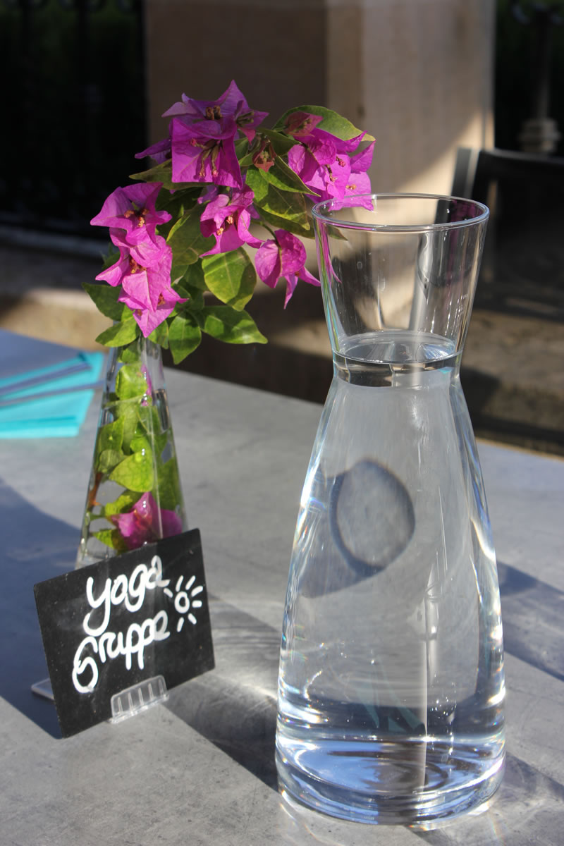 - Ganztägig gratis Obst, Wasser vom Trinkwasserspender (Verzicht auf Plastikflaschen!) und Tees