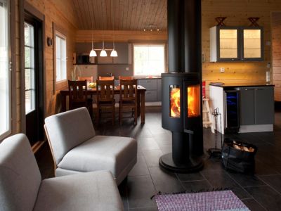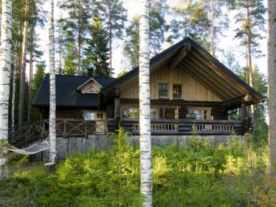 - Großzügige, finnische Blockhütten inmitten von weitläufigem Mischwald