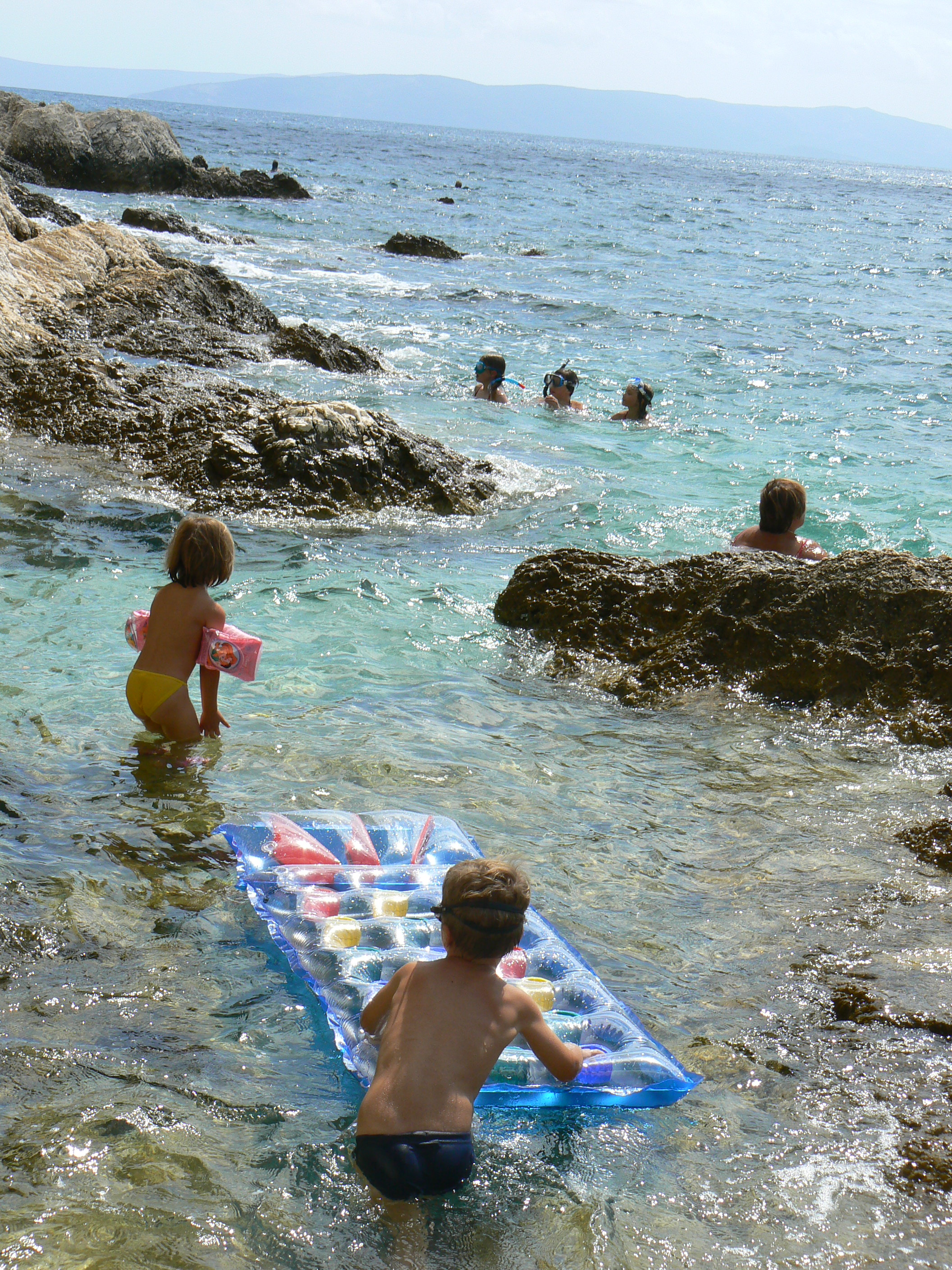 Das Wasser in Rabac ist legendär durchsichtig, der sehr lange Promenadenweg angenehm, weil man überall ins Wasser gehen kann ? und das auch tut. Dort kann man sich aussuchen, ob man lieber eine Liege mit Schirm mietet oder auf einem Felsen liegt. Wir fanden die Strände in Sveta Marina (Girandella), und in Ravni besonders angenehm, dorthin muss man jeweils ca. eine halbe Stunde mit dem Auto fahren. Ohne Auto geht es leider nicht, um mit dem Fahrrad zu fahren, muss man sehr gut trainiert sein. Alle nehmen das Auto, was zu einem Park-Chaos in Rabac führt. (Obwohl es dort einen sehr großen Parkplatz am östlichen Stadtrand gibt).