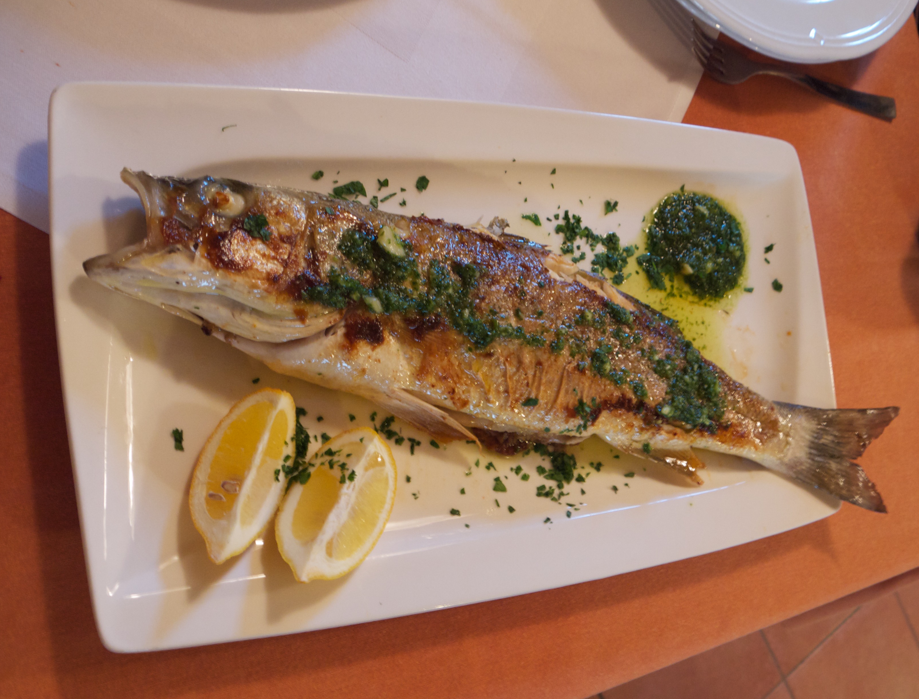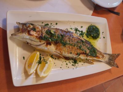 Am Abend ließen wir uns dann Lillys Kochkünste schmecken. Deren Küche war sehr abwechslungsreich und brachte uns die Spezialitäten Istriens näher. Ein Abendessen bestand aus einer frischen Vorspeise (oft ein sommerlicher Salat), einem sehr guten Hauptgericht (meistens ein regionales Fleisch- oder Fischgericht, bei dem aber auch auf die vegetarischen Wünsche von uns Kindern eingegangen wurde) und einem süßen Nachtisch (beispielsweise Kuchen oder "Krafi"), der das Menü abrundete. Danach war jeder satt und zufrieden! Auch das Frühstück war sehr reichhaltig und in Form eines Buffets angerichtet.