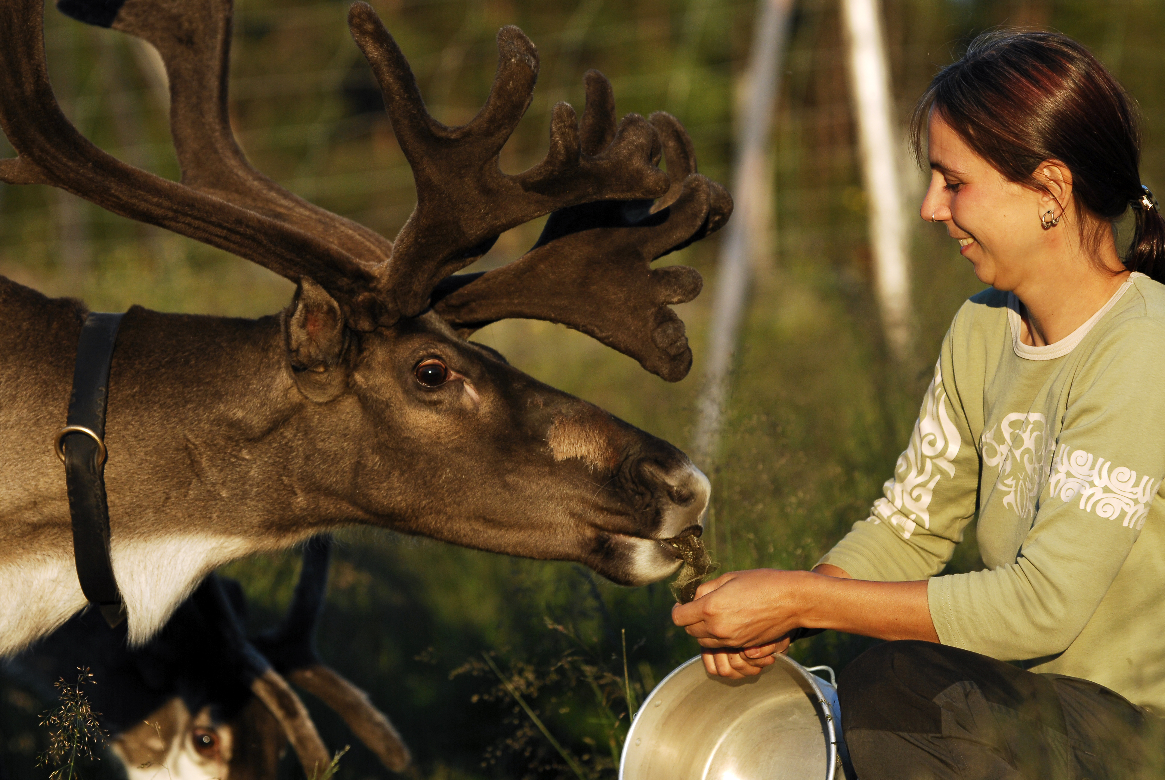 Sie haben Gelegenheit, bei der Fütterung der Rentiere mitzuhelfen und den Kontakt zu den Tieren zu vertiefen. Im Rahmen des anschließenden "Rentiertrainings" erhalten Sie eine Einweisung bezüglich des Anlegens der Ausrüstungen und des Führens eines Rentieres. Danach wird das Erlernte selbständig erprobt.