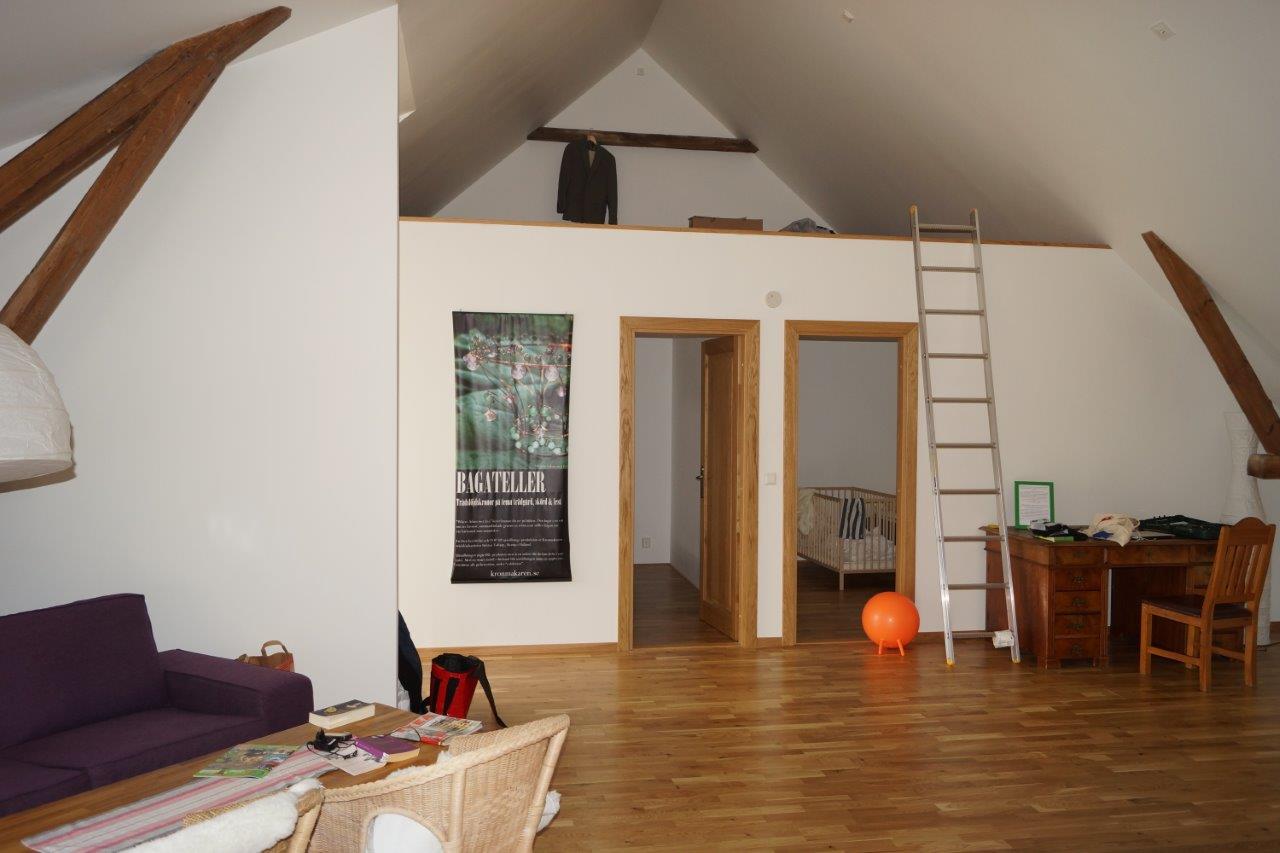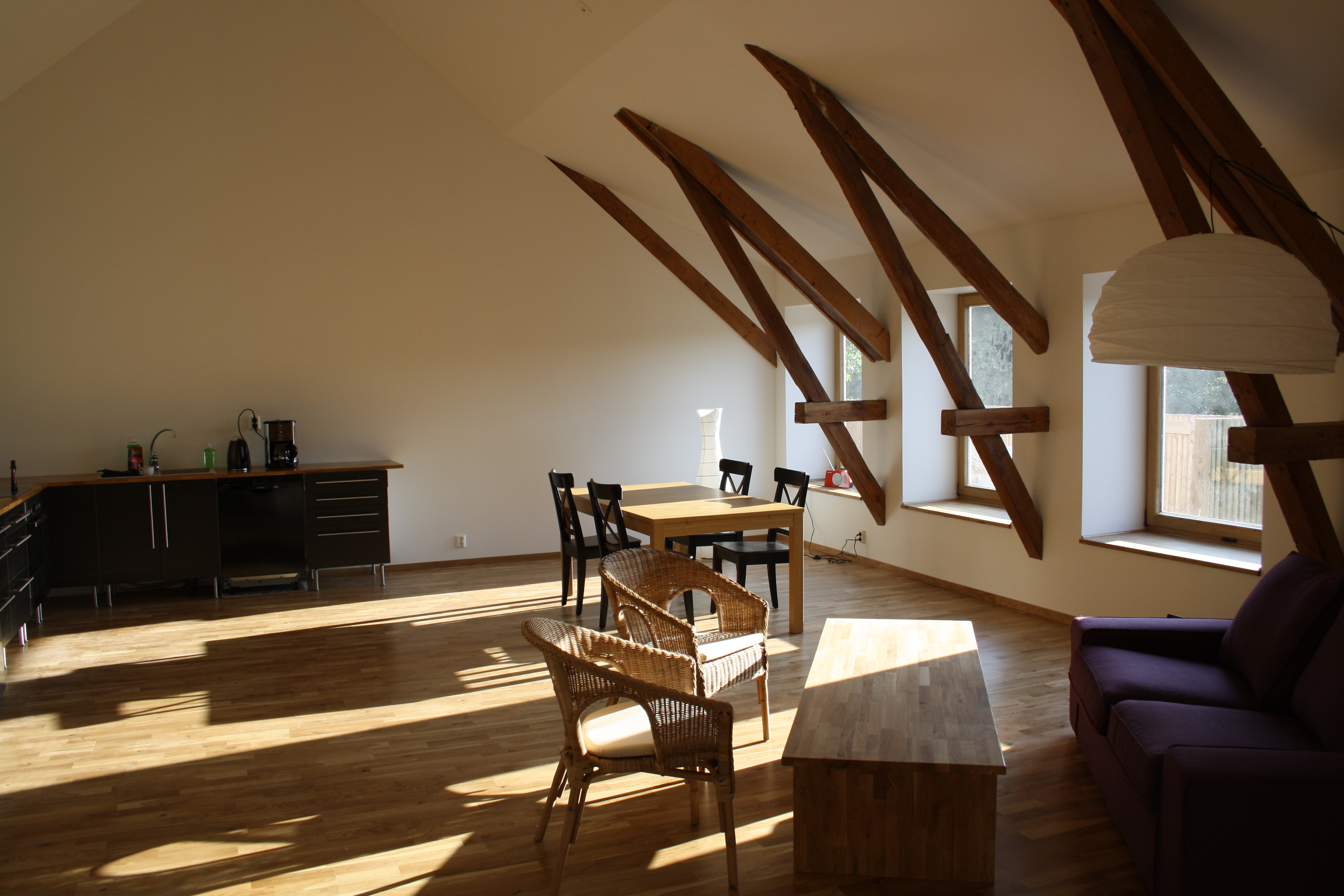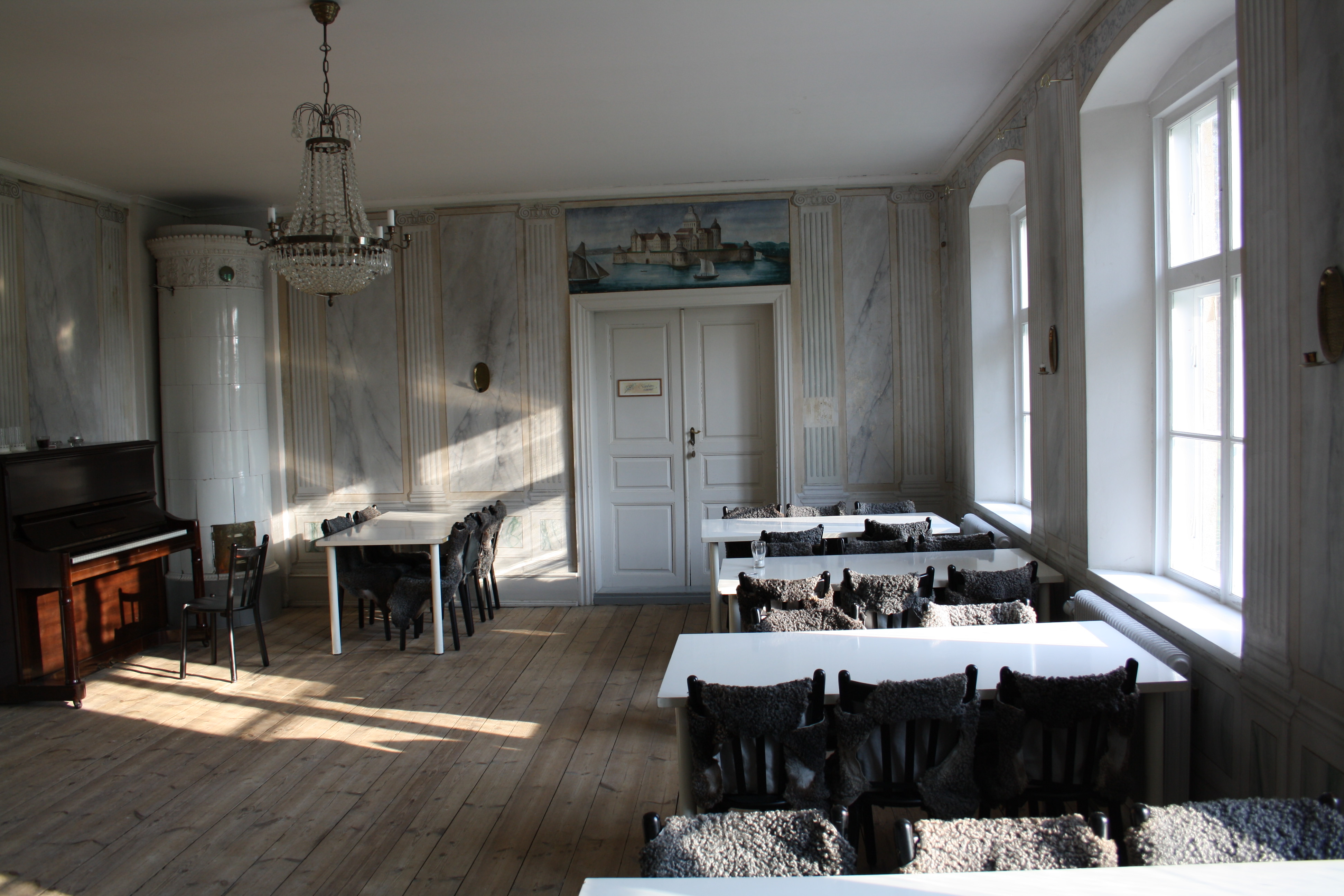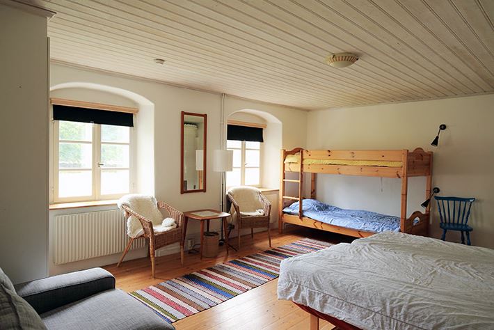 Im 150 Jahre alten Gutshof sind 2015 insgesamt fünf Wohnungen entstanden, die zwischen 28-68 qm groß sind. Alle Wohnungen teilen sich eine Gemeinschaftsküche ausgestattet mit je einem Kühlschrank für jede Wohnung, zwei Herden, Mikrowelle, Kaffeemaschinen und Wasserkochern. Zusätzlich stehen den hier wohnenden Gästen ein großer Saal, ein "historisches Zimmer" und eine Bibliothek zur Verfügung. Der Gutshof lebt von seinem Charme im späten neoklassizistischen Stil: die Zimmer haben alle noch die ursprünglichen Holzdielen aus dem Jahr 1862 und drei der Wohnungen sowie der große Saal sind mit stilvollen Kachelöfen ausgestattet. Im unteren Stockwerk hängen alte elektrifizierten Kronleuchter und im Saal sind auf den Wänden Originalmalereien zu sehen, die die Königsschlösser in Stockholm, Kalmar und auf Öland zeigen.
