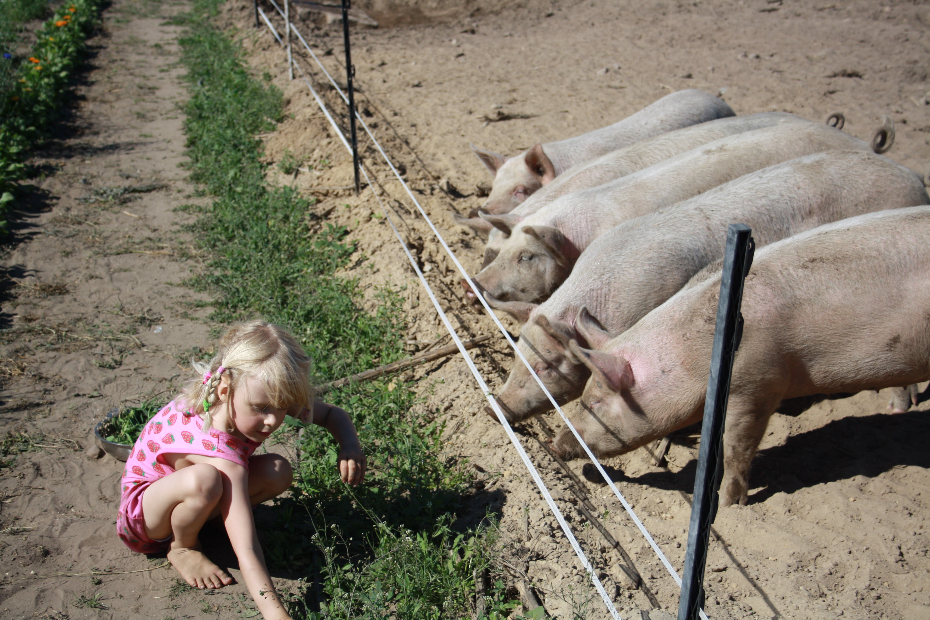 - Großes Grundstück mit vielen Tieren: Schafe, Schweine, Pferde, Kaninchen, Hühner, Hofkatze
