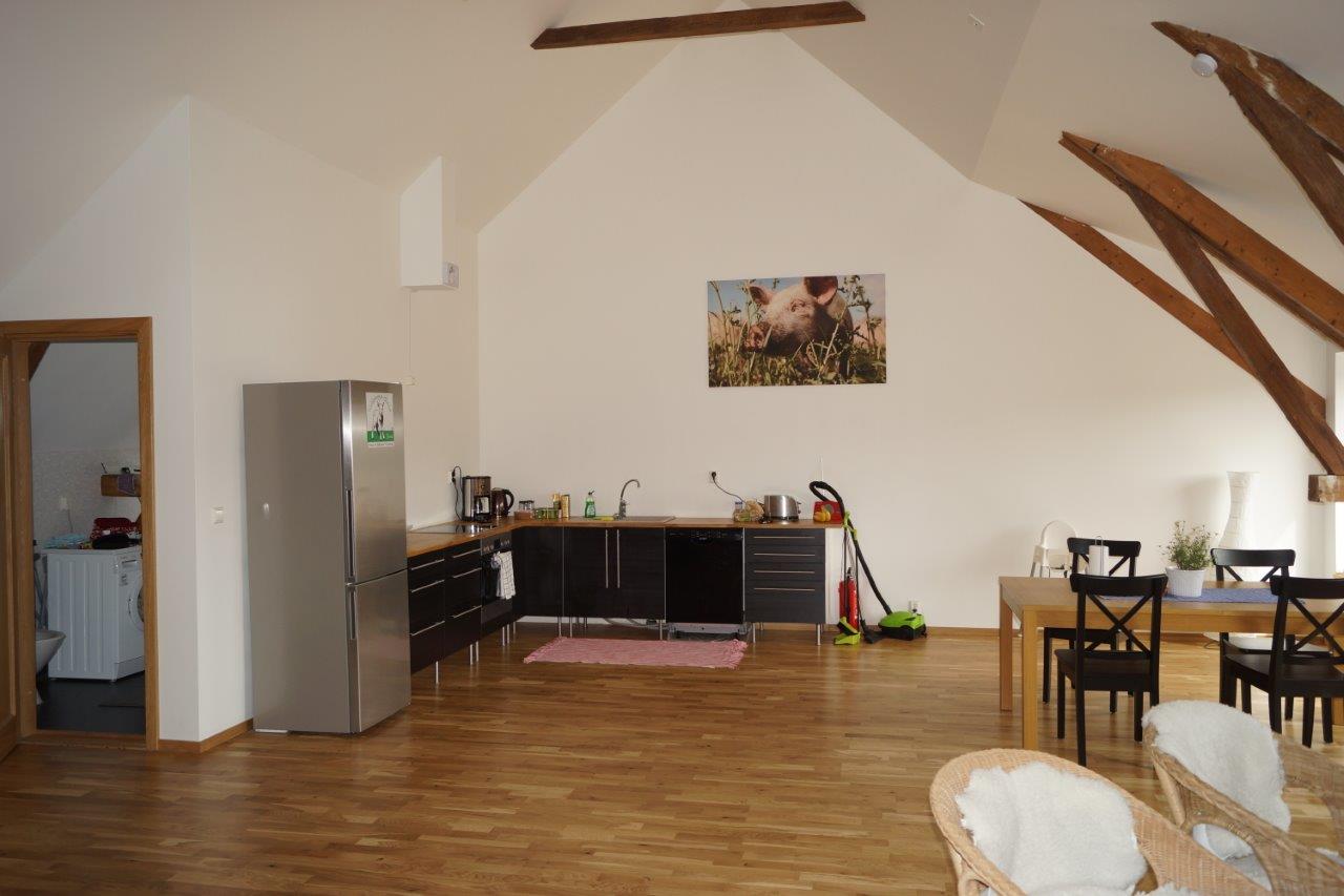 - Gutshof lebt von seinem Charme im späten neoklassizistischen Stil: ursprüngliche Holzdielen von 1862, stilvollen Kachelöfen, alte elektrifizierte Kronleuchter, Original-Wandmalereien
