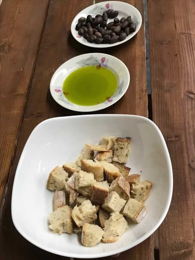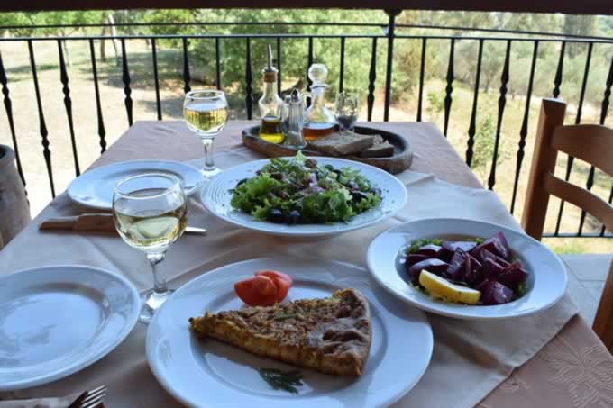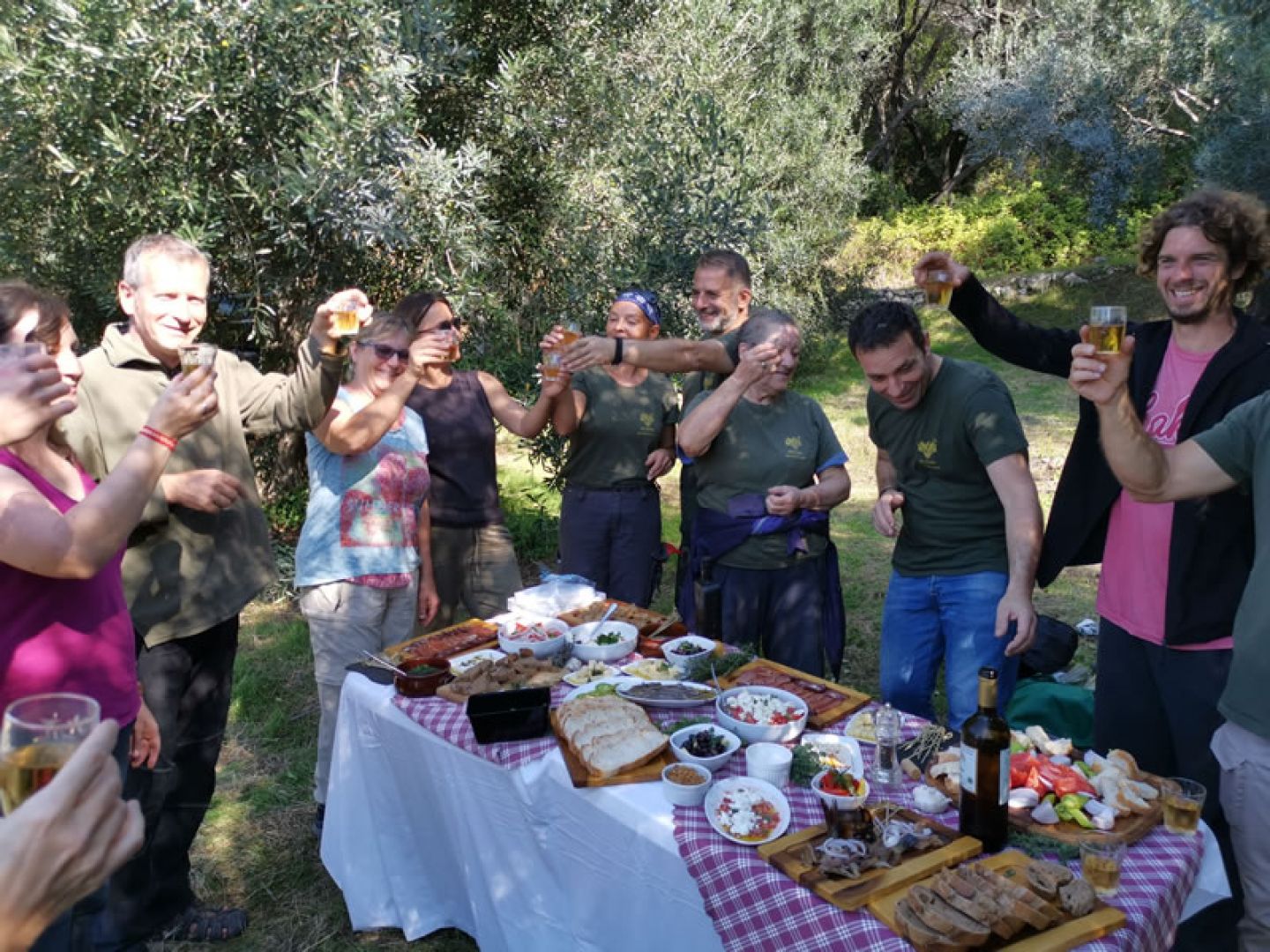 Am Freitag als relativ freiem Tag steht noch das Herstellen von Olivenpaste auf dem Programm, nach traditionell überliefertem Rezept - eine herrliche Batzerei! Costas schiebt - ebenfalls mit Tradition - an diesem letzten Abend die Pizzen in seinen Ofen. Ob von ihm oder wenn wir unterwegs waren: das Essen war immer gut.